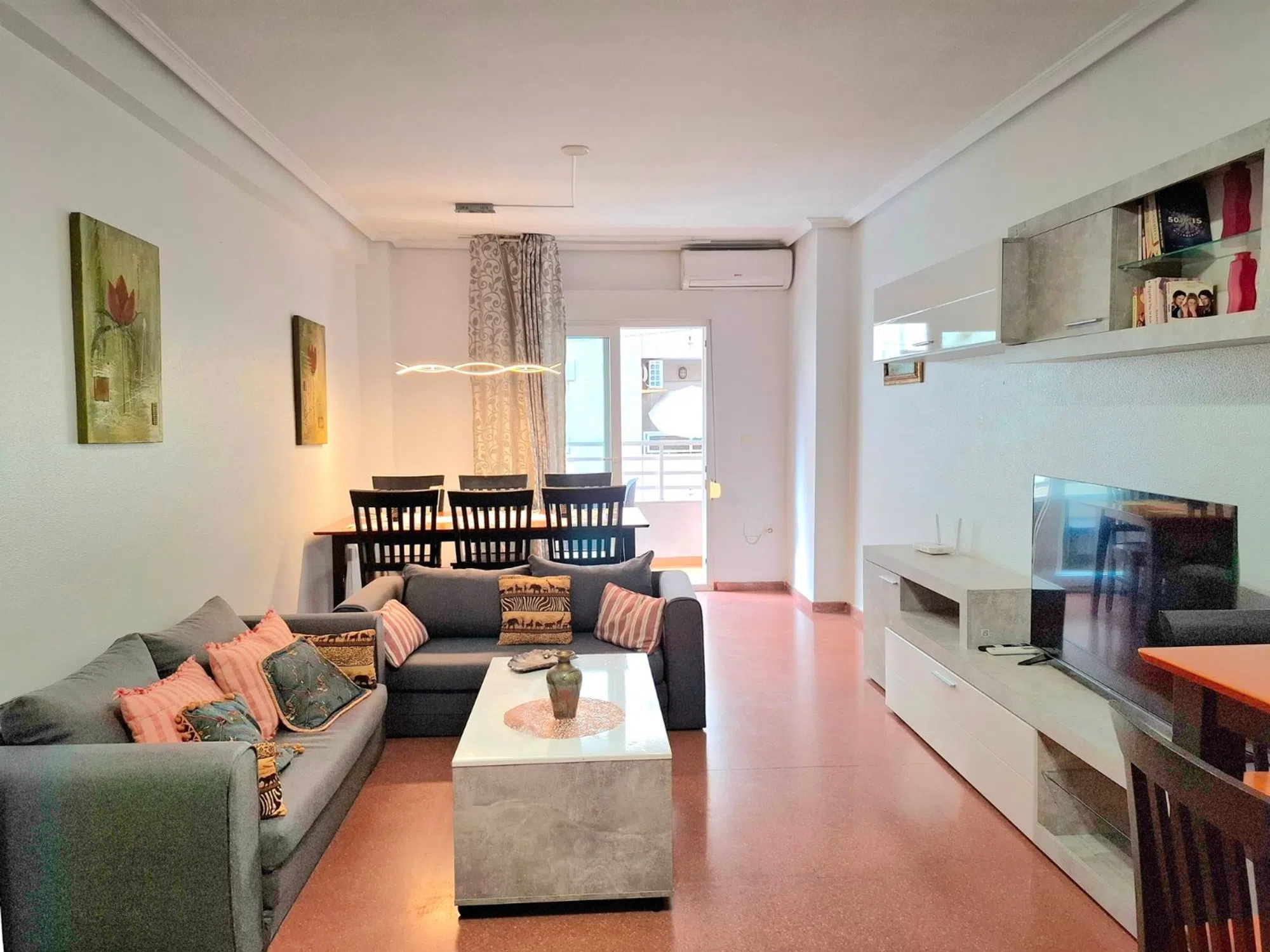 Exclusiva vivienda en el centro de Torrevieja Este espectacular piso de 125 m² en excelente estado ha sido reformado con gusto y está listo para entrar a vivir. Una vivienda amplia, luminosa y cómoda, situada en la primera planta de un edificio con ascensor, en pleno corazón de Torrevieja, junto a la Plaza de la Ermita. La distribución es perfecta para disfrutar de cada estancia: un salón independiente con acceso a la terraza, tres dormitorios con armarios empotrados, dos baños completos (uno con bañera y otro en suite con ducha) y una cocina independiente con salida directa a un patio de uso exclusivo. Además, dispone de un trastero privado en la terraza comunitaria que aporta mayor comodidad y espacio de almacenamiento. Reformada con materiales de calidad, se entrega completamente amueblada y equipada, con aire acondicionado en todas las habitaciones, cerramientos de climalit y una magnífica luminosidad que aporta calidez y confort durante todo el día. La ubicación es inmejorable. Aquí tendrás todo al alcance de la mano: supermercados, farmacias, colegios, tiendas, cafeterías y una gran oferta de ocio y restauración. El paseo marítimo y las playas están a solo unos minutos andando, lo que convierte a esta vivienda en una oportunidad única para vivir el estilo de vida mediterráneo durante todo el año. Una propiedad que combina espacio, comodidad y una localización privilegiada, ideal tanto como residencia habitual como inversión.