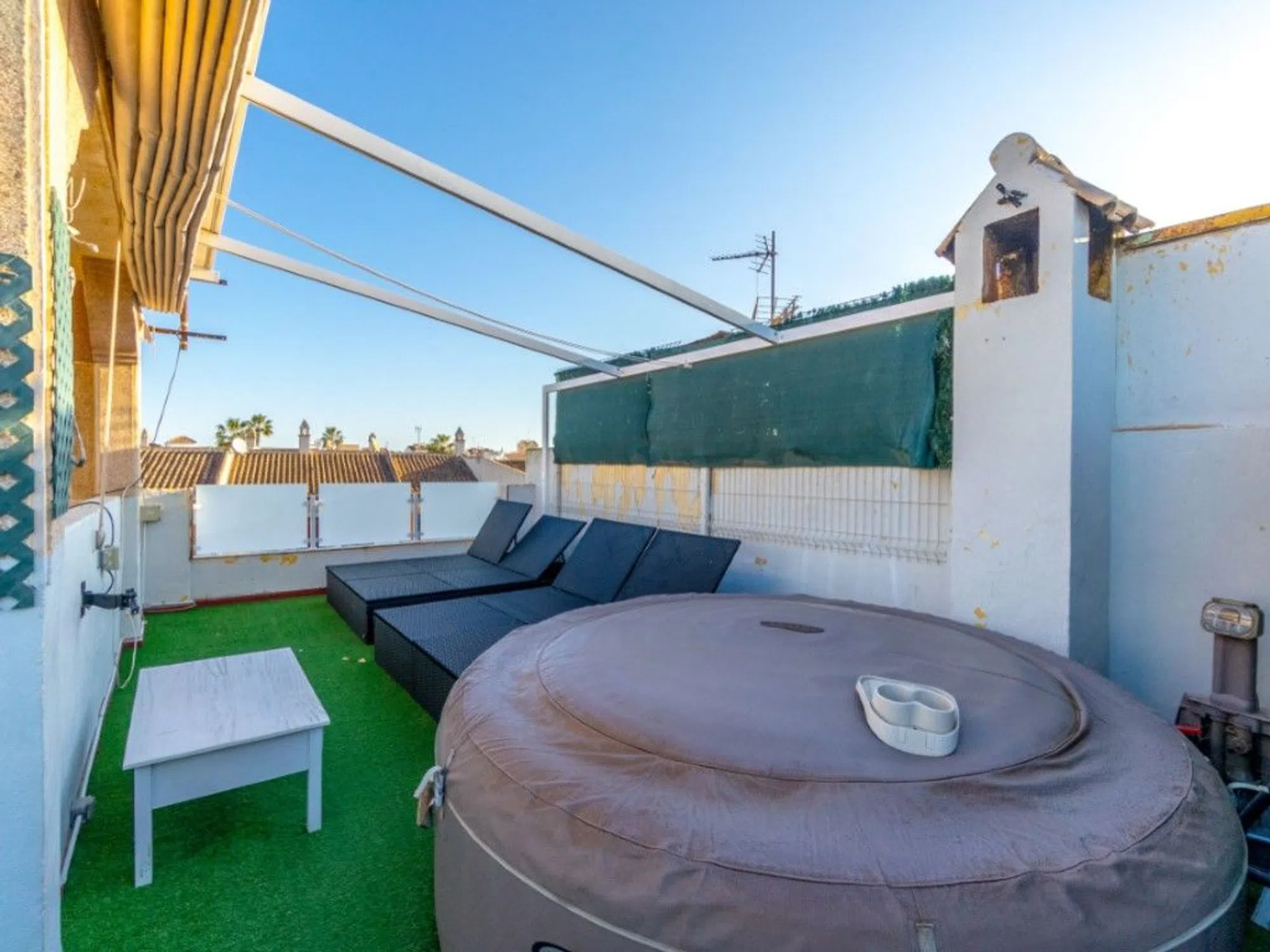 Esta es realmente una impresionante casa adosada, la residencia está ubicada en Aguas Nuevas con una vista impecable. La vivienda cuenta con 3 dormitorios, 2 baños completos, cocina independiente, solárium y un amplio jardín. La propiedad ha sido reformada. La propiedad se vende totalmente equipado y parcialmente amueblado. Situado cerca de todos los servicios como restaurantes, supermercados, centros comerciales, el centro comercial TorreMarina está a solo 550 metros de la residencia y del mercado semanal de Torrevieja, también no muy lejos de la residencia Cerca de la playa de La Mata y de la playa de Los Locos. La zona es muy conocida por sus amplias y hermosas zonas verdes. Hay varias paradas de autobús en la zona, que te llevan al centro de Torrevieja o a la playa de La Mata si no quieres caminar. A tan solo 35 minutos en coche del aeropuerto de Alicante. SOBRE TORREVIEJA Torrevieja es una ciudad de la provincia de Alicante, en la región de la Comunidad Valenciana en España. La ciudad es un popular destino turístico situado a unos 40 minutos en coche de la ciudad de Alicante y del aeropuerto. Torrevieja fue originalmente un pequeño pueblo de pescadores, y hoy en día es uno de los mayores productores de sal de Europa, Torrevieja ha sido llamada anteriormente 'ciudad de la sal', pero en los últimos años la ciudad también ha sido llamada 'ciudad deportiva', debido a los grandes estadios deportivos que se han construido en los últimos años. Fruto de esta fantástica iniciativa, Torrevieja será una de las cuatro ciudades organizadoras durante la Copa del Mundo de Balonmano Femenino en 2021. Al alojarse en Torrevieja, se encuentra a pocos pasos de playas de arena blanca y alargada con un sello de 'bandera azul', como indicación, entre otras cosas, de la alta calidad del agua. En las inmediaciones y, a menudo, 'justo fuera' de la puerta, encontrará una gran selección de tiendas locales, restaurantes, cafeterías, centros comerciales, parques verdes, el puerto y el paseo marítimo. Si buscas una zona con vida todo el año y un microclima saludable con 320 días de sol al año, esta puede ser para ti. Este debe ser experimentado. 235.000 € + impuestos Gastos compartidos: aprox. 30€ al mes Tasa de basura: 21,36 € x 2 veces al año Impuestos: 276.77€ al año ref: KP4250.