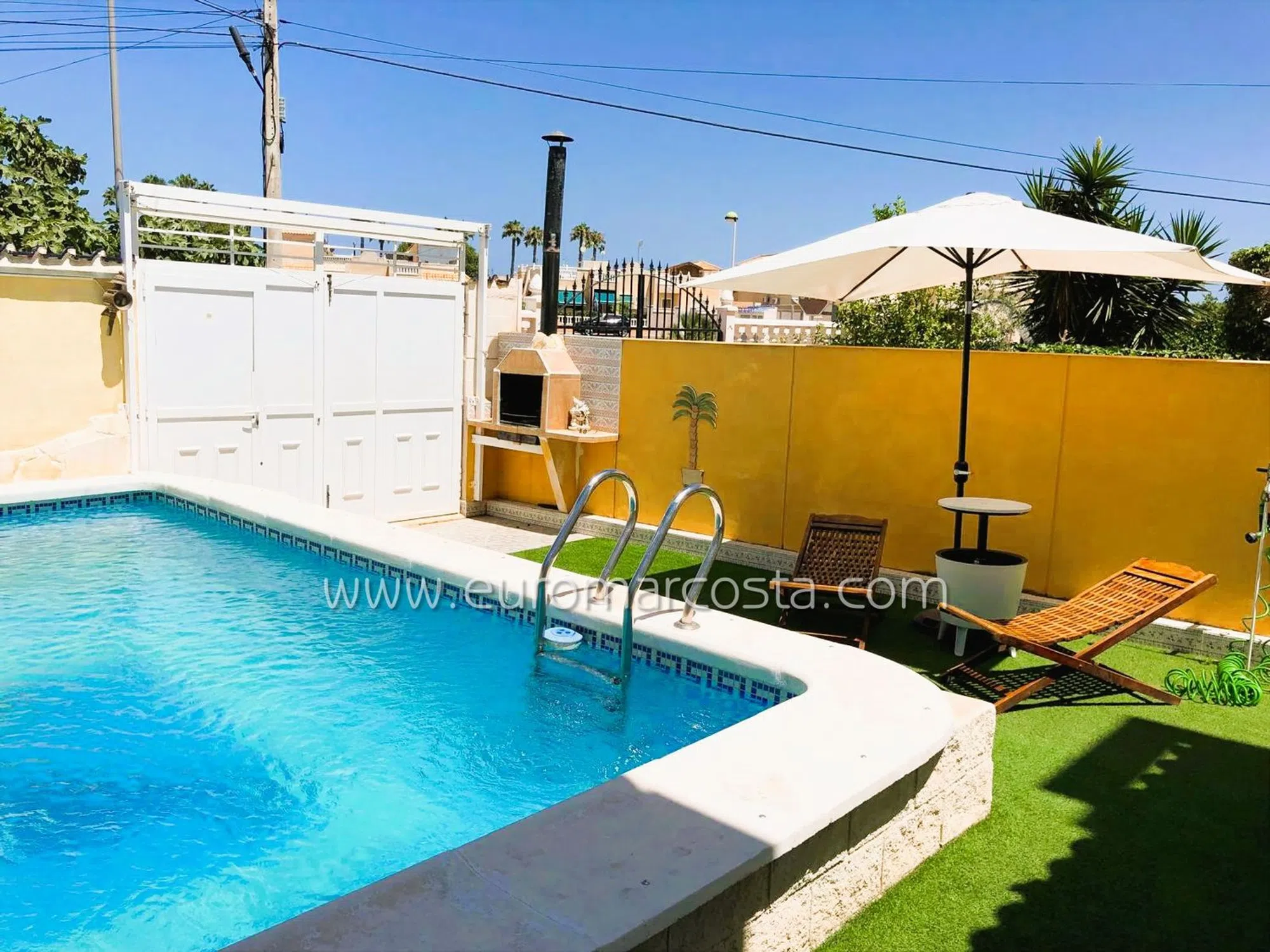 EUROMAR COSTA · API Agente de la Propiedad Inmobiliaria COL. 00742 Presenta: Este acogedor chalet pareado en Torrevieja es el hogar ideal para quienes buscan comodidad, amplitud y tranquilidad en un entorno privilegiado. Ubicado en una parcela amplia y soleada, dispone de una piscina privada, jardín muy cuidado, zona de barbacoa y un acogedor porche exterior, perfecto para relajarse o disfrutar de agradables reuniones al aire libre. Distribución interior: Planta principal: luminoso salón-comedor, cocina independiente, baño/aseo y zona de servicio con espacio de almacenaje y trastero. Primera planta: tres habitaciones dobles y un baño completo, ideales para ofrecer privacidad y confort a toda la familia. Segunda planta: amplio solárium con impresionantes vistas panorámicas, además de una zona cerrada acondicionada como salón y dormitorio de invitados, perfecta para disfrutar del clima mediterráneo durante todo el año. Entorno y ubicación: Situado en una zona residencial tranquila, pero muy cerca de todos los servicios esenciales y las hermosas playas de Torrevieja, este chalet ofrece la combinación perfecta de calidad de vida, independencia y una ubicación privilegiada. ¡No dejes pasar la oportunidad de convertir este chalet en tu nuevo hogar! Contacta con EUROMAR COSTA para más información o concertar una visita. Nota legal: El precio no incluye los impuestos de transmisiones patrimoniales, ni los gastos notariales o registrales. No se incluyen en el precio los muebles, electrodomésticos ni elementos no estructurales, salvo indicación expresa. Este documento tiene carácter informativo y orientativo, no vinculante, siendo su uso estrictamente comercial.