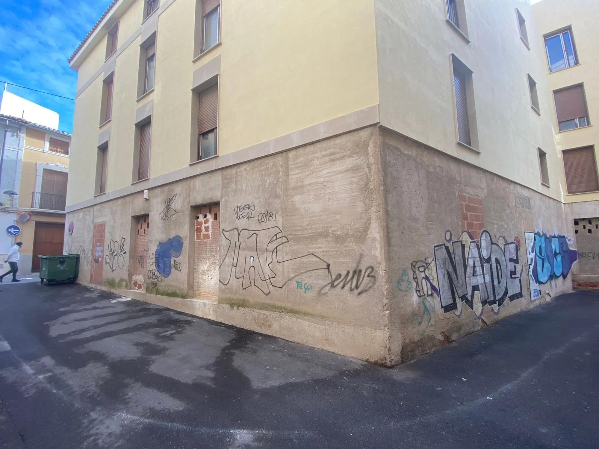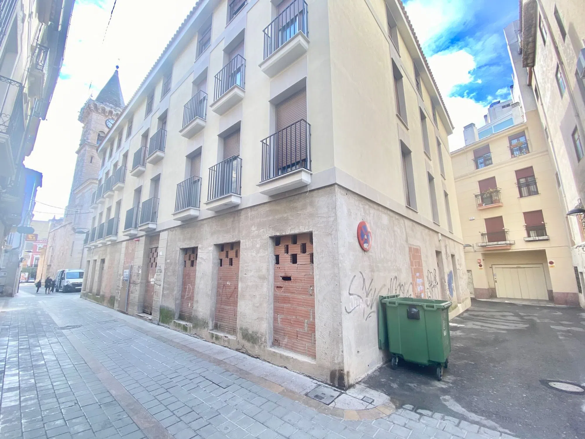 Local en bruto obra nueva en pleno centro de Villena, calle de mucho tránsito, esquina con amplia fachada. Para usos variados como almacén, punto de distribución sin necesidad de obras extras, tiene posibilidad de acceso por tres calles.