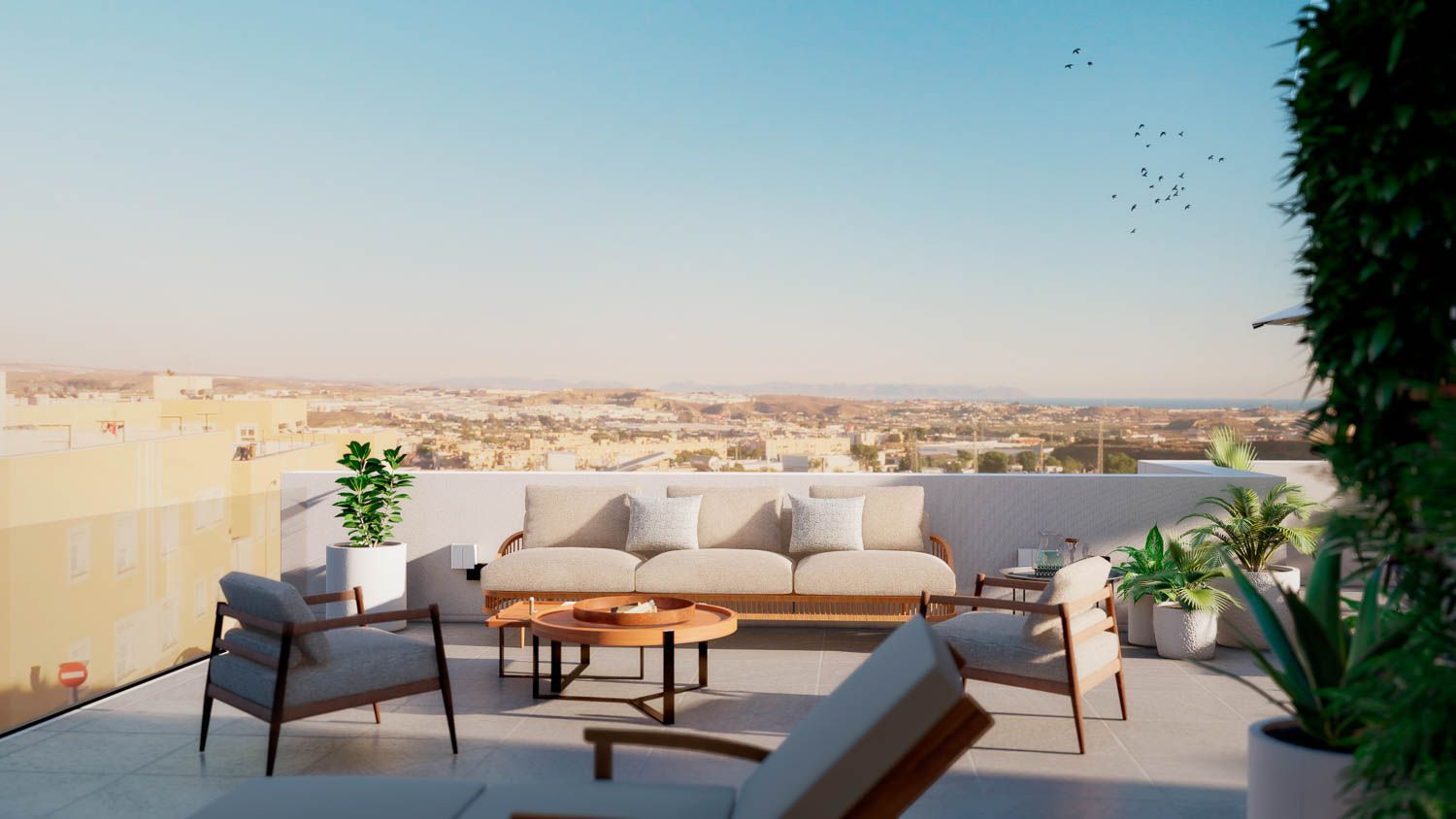 Terrazas Los Pinos es un Residencial que destaca por su luminosidad y sus amplias terrazas con vistas al Cabo de Gata.Las viviendas estan diseñadas con espacios abiertos y modernos dotándolas con grandes ventanas que aportan gran luminosidad con salida directa a la terraza para disfrutar al máximo de las vistas y su entorno.Empieza tu nueva vida en una de nuestras viviendas de 2 y 3 dormitorios. El diseño es otra de las ventajas competitivas de esta promoción dónde se ofrecen zonas pensadas para que disfrutes de la luz natural y del confort de tu nueva casa.