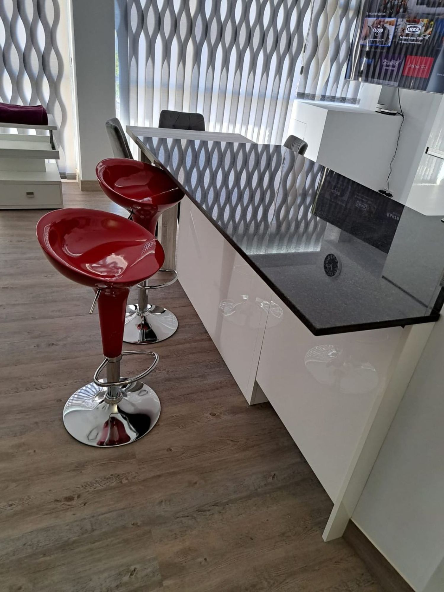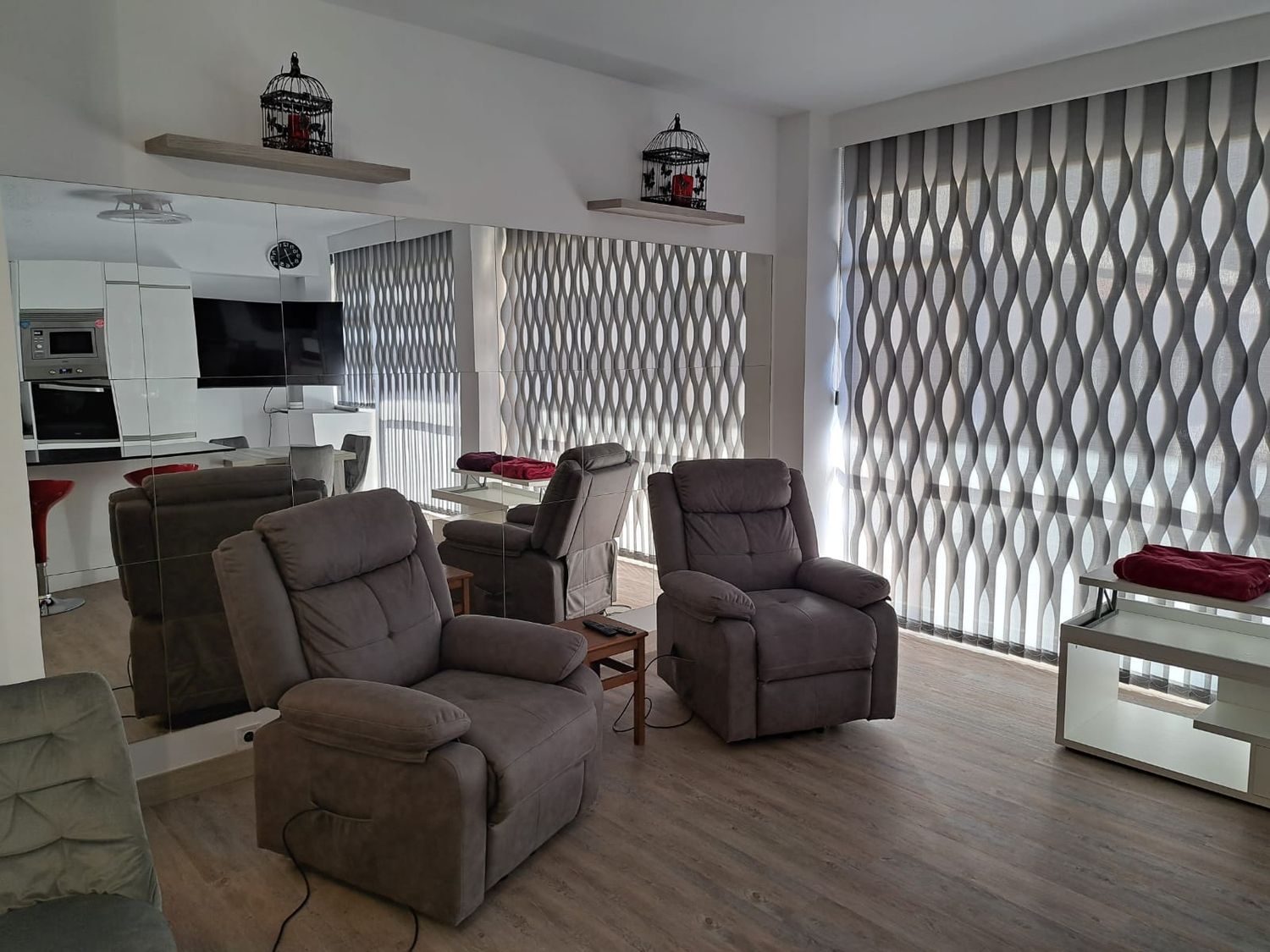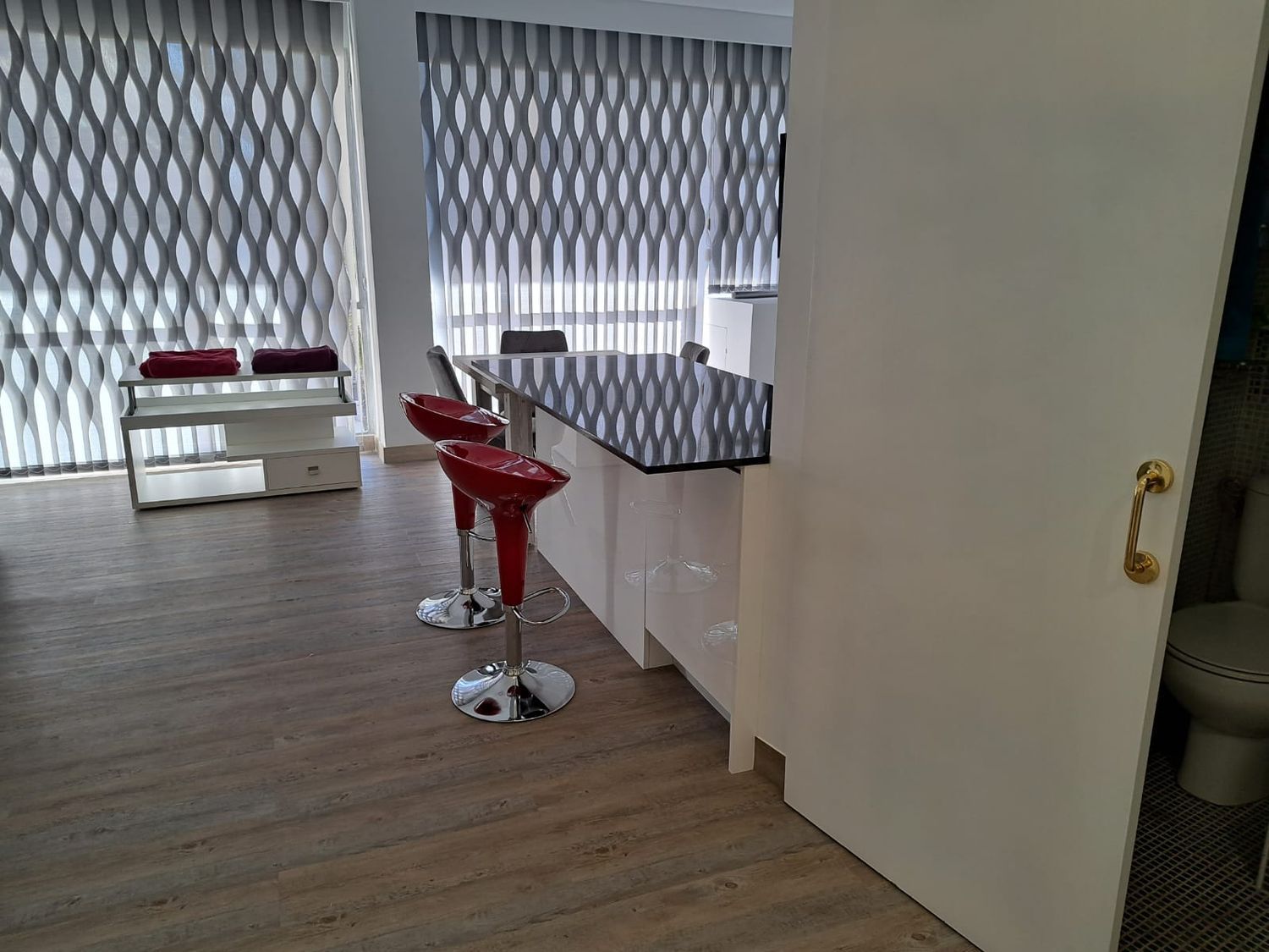 Precioso loft diáfano, una habitación con cama de 1,80 cts. , salón todo amueblado, esta impecable, con smarttv, internet, mucho almacenaje, todo nuevo a estrenar, aire acondicionado mitsubishi, muy buenas vistas al corte ingles y jaime III, a la altura del edificio nakar, con portero físico. Muchos extras.