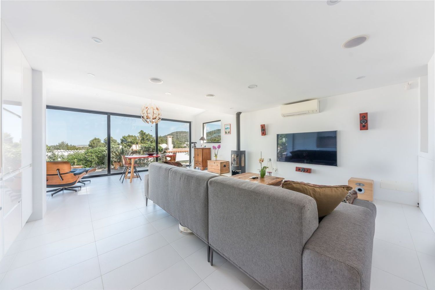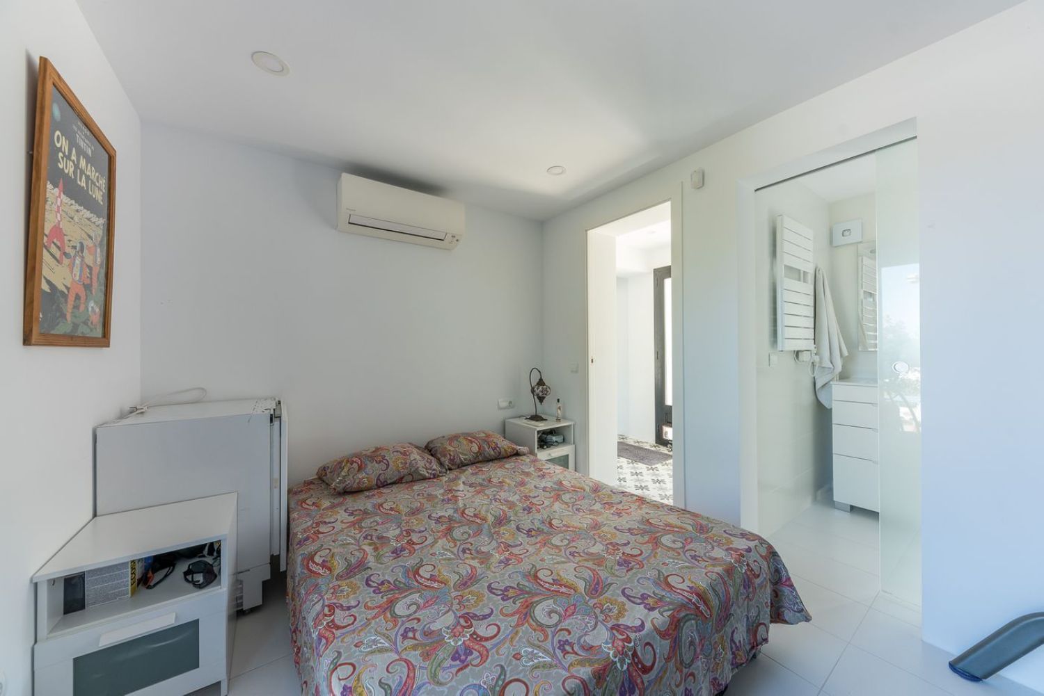 Bungalow en Cala Vadella con 2 dormitorios. El bungalow ha sido recientemente renovado en su totalidad. La superficie habitable de 88 m² se divide en un gran salón-comedor con cocina abierta, 2 dormitorios y dos baños, uno de ellos en suite. Una amplia ventana frontal da acceso a la terraza con una pequeña piscina y al jardín. El equipamiento incluye aire acondicionado frío/calor en todas las habitaciones, ventanas con doble acristalamiento y marco de aluminio, sistema de alarma, altavoces en el techo, iluminación LED en todos los colores. La casa está en perfecto estado y lista para entrar a vivir. La playa está a sólo unos minutos a pie. A San José o al aeropuerto 15 min. o 30 min. en coche. [IW].