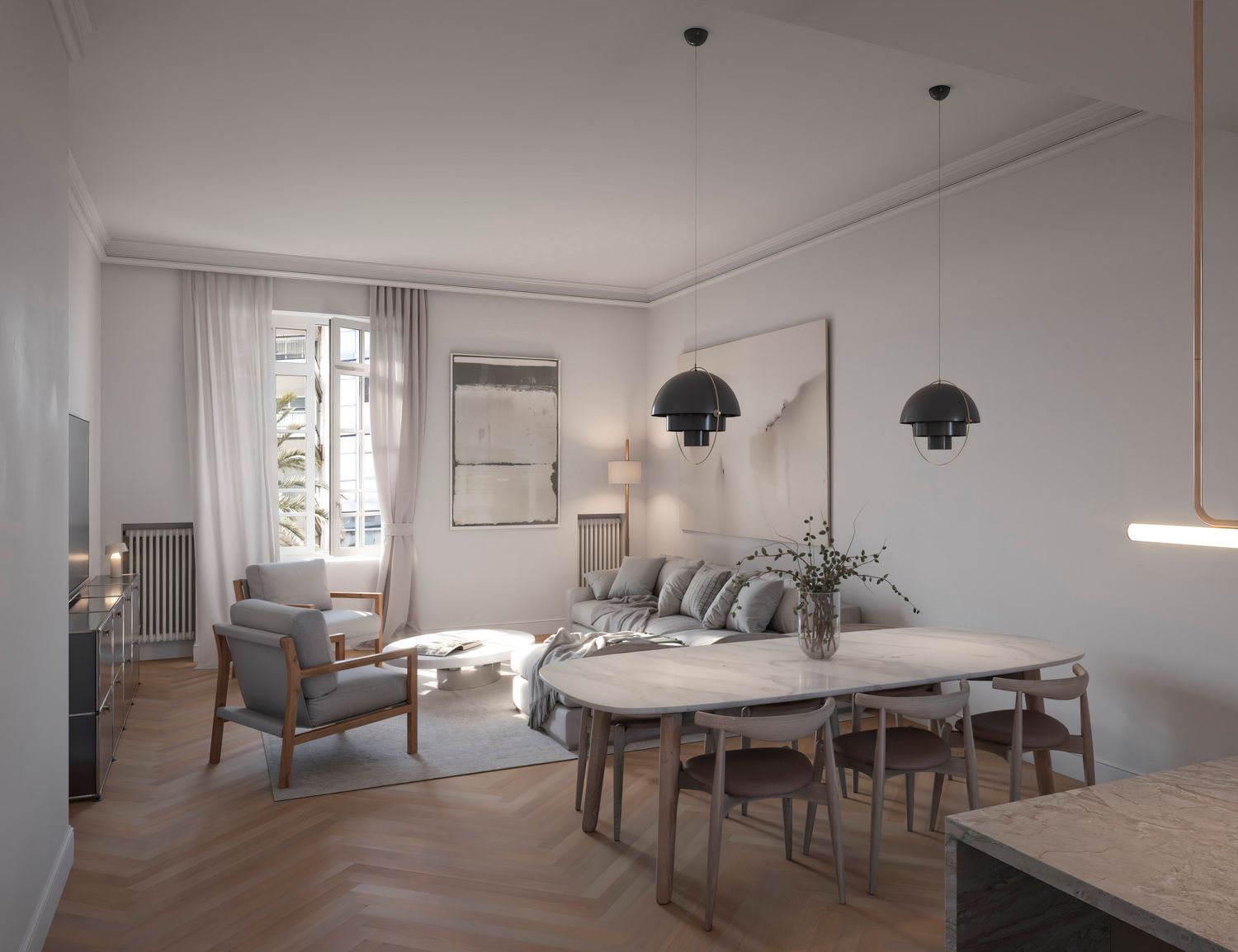 De interieurarchitectuur combineert klassieke en eigentijdse elementen, van parketvloeren tot details in wit satijnhout. De keukens zijn volledig uitgerust met hoogwaardige apparatuur. Bovendien is de technische infrastructuur ultramodern, met geavanceerde klimaatsystemen, nieuwe elektrische installaties en een modern gemeenschappelijk verwarmingssysteem. De woningen zijn in afwachting van het verkrijgen van de energiecertificering.