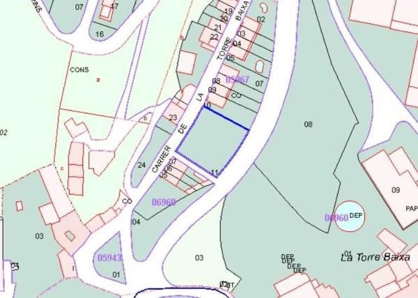 Terreno urbano de 1.219 m2 de parcela y una edificabilidad aproximada de 1100 m², Ubicado en Cl Torre Baixa 28, La Torre De Claramunt Referencia catastral: 0596711CF9909N0001GP.