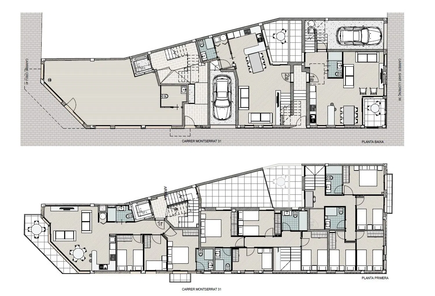 De huizen, met oppervlakten van ongeveer 154 m² en 161 m², bieden een opmerkelijke ruimte met vier slaapkamers en een extra ruimte voor studie of werk. Deze woningen beschikken over open keukens die in verbinding staan met grote terrassen en worden aangevuld met een privégarage en royale tuinen. Elk huis garandeert de hoogste kwaliteits- en efficiëntienormen, met een Energiecertificaat A.