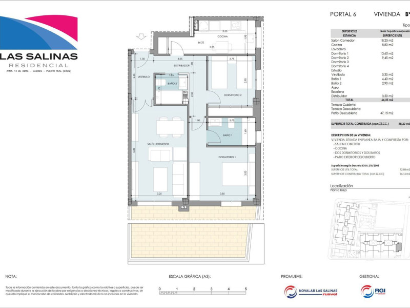 ULTIMAS VIVIENDAS!DA EL SALTO, DESCUBRE LAS SALINAS, YA A LA VENTA LA FASE IIEl año de su centenario el Grupo Rusvel les presenta, Residencial Las Salinas, un proyecto residencial único, diseñado en todos sus detalles para facilitar su vida y la de su familia, pero a la vez, buscando ser un producto accesible, asequible y personalizable, buscando ser su hogar en la Bahía de Cádiz. Las viviendas se han diseñado maximizando la habitabilidad de sus estancias, facilitando al máximo su amueblamiento e intentando optimizar espacios tanto interiores como exteriores para que pueda disfrutar al máximo de su hogar.Encontrará la tipología que más se adapte a sus necesidades. dos, tres o cuatro dormitorios. Apartamentos, pisos, dúplex o áticos, con amplios patios o jardines en planta baja, terrazas en todas las viviendas superiores y espectaculares áticos con enormes terrazas. Residencial Las Salinas le ofrece una serie de terminaciones a elegir en la vivienda que estamos seguros se adaptarán a sus gustos, de forma que cuando acceda a su hogar sea el que más se adapte a su estilo y le evite reformas posteriores.Residencial Las Salinas dispone de las más amplias zonas comunes de Puerto Real, convirtiendo a esta promoción en privilegiada dentro de la Bahía: zonas verdes, piscinas comunitarias, parque infantil, pista de pádel, gimnasio y club social/gastrobar, donde podrá disfrutar en familia y con amigos del aire libre, Todo ello además con la privilegiada ubicación de la barriada de Casines, en el centro de la Bahía de Cádiz, que dota a Residencial Las Salinas de unas comunicaciones excepcionales a través de vías rápidas y que le permitirán acceder a cualquier población cercana en escasos minutos. Residencial Las Salinas se desarrollará en dos fases, pero facilitando desde el principio la gran diversidad de zonas comunes. No pierdas la oportunidad de elegir cuanto antes tu nuevo hogar.DA EL SALTO, DESCUBRE LAS SALINASLos precios indicados corresponden solo a la vivienda, disponiendo cada una de una plaza de garaje y algunas de trasteros con precios aparte. Precio IVA no incluido (10%).