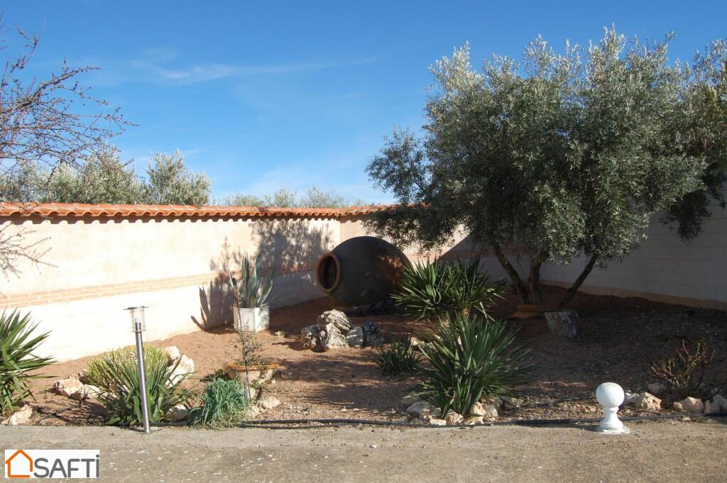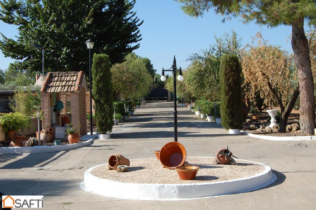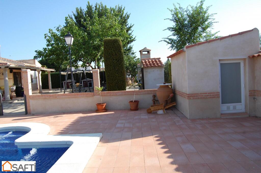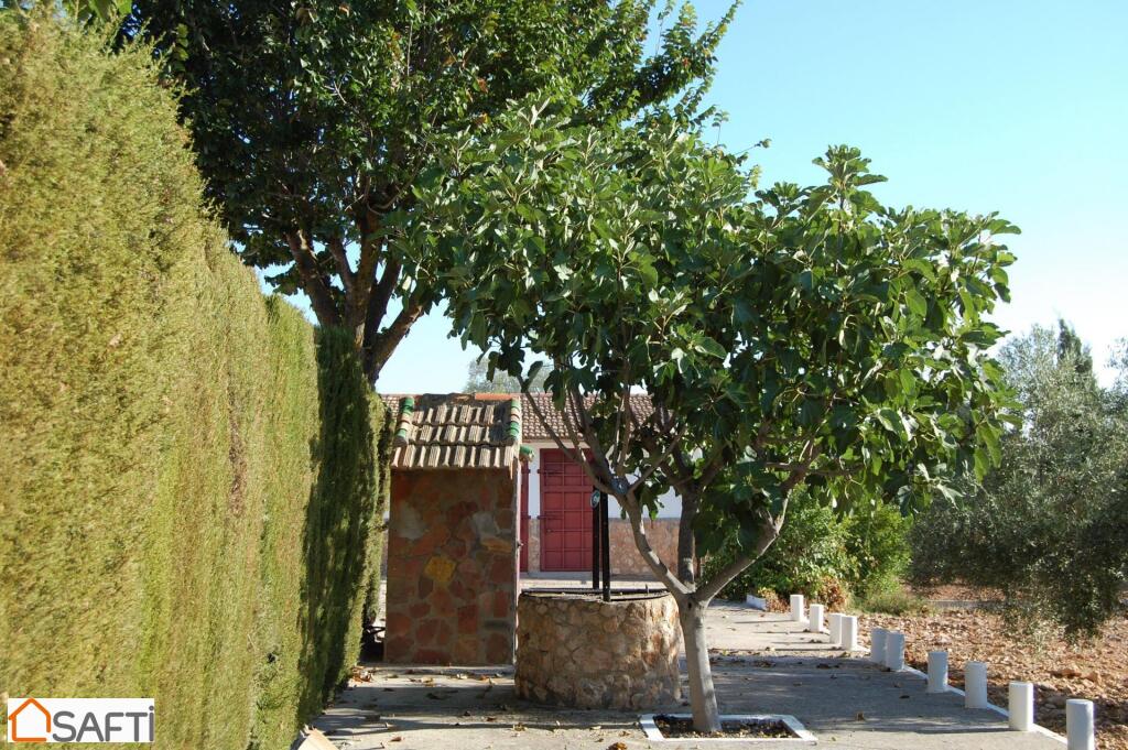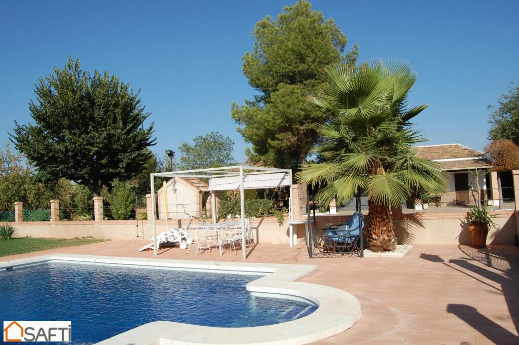 Piscina en la que podrás zambullirte y refrescarte, antes de tumbarte en la zona de césped que tiene alrededor Cocina campera independiente, espacio cubierto para aparcamiento, cochera con capacidad para varios coches, Zona de huerto en el que cultivar sabrosas y jugosas hortalizas, unos 80 olivos, pozo con sistema de ósmosis,…
