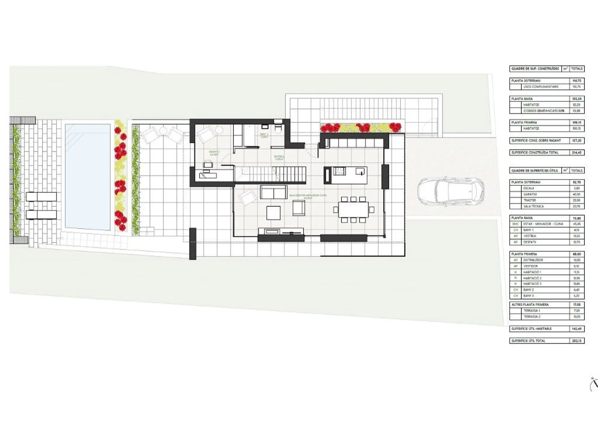 En la prestigiosa zona residencial de Vizcondado de Cabanyes, a solo 10 minutos del centro de Calonge y de las playas, se encuentra esta villa de nueva construcción con entrega prevista para diciembre de 2025. Diseñada con un enfoque contemporáneo y sostenible, la vivienda incorpora tecnologías avanzadas de eficiencia energética, como paneles solares de última generación y un sistema de aerotermia para calefacción y refrigeración, que permiten reducir tanto el consumo como la huella ambiental. La distribución interior ofrece espacios amplios y funcionales. En la planta principal se ubican tres dormitorios, dos baños completos y una estancia adicional que puede destinarse a despacho o cuarto dormitorio. La zona de día se organiza en un espacio diáfano que integra salón, comedor y una cocina moderna con gran isla central. La planta inferior, de generosas dimensiones, brinda múltiples posibilidades de uso: gimnasio, sala de juegos, área de trabajo o espacio de ocio, adaptándose a distintas necesidades. En el exterior, la piscina privada añade un atractivo adicional para disfrutar del clima mediterráneo en un entorno tranquilo. Una propuesta ideal para quienes buscan confort, diseño actual y compromiso con el medio ambiente en una ubicación consolidada y bien comunicada. Para más información, no dude en contactarnos. Cronograma del proyecto: Este cronograma ofrece una visión general de las fases de construcción. Las fechas y duración específicas son estimaciones y se irán actualizando a medida que el proyecto avance. Fase 1: Anteproyecto (febrero 2025) Fase 2: Presentación de la licencia de obra (abril 2025) Fase 3: Movimiento de tierras y cimentación (junio/julio 2025) Fase 4: Construcción de estructura + cubierta (septiembre 2025) Fase 5: Acabados interiores (octubre 2025) Fase 6: Controles finales y entrega (diciembre 2025) ref: 309.