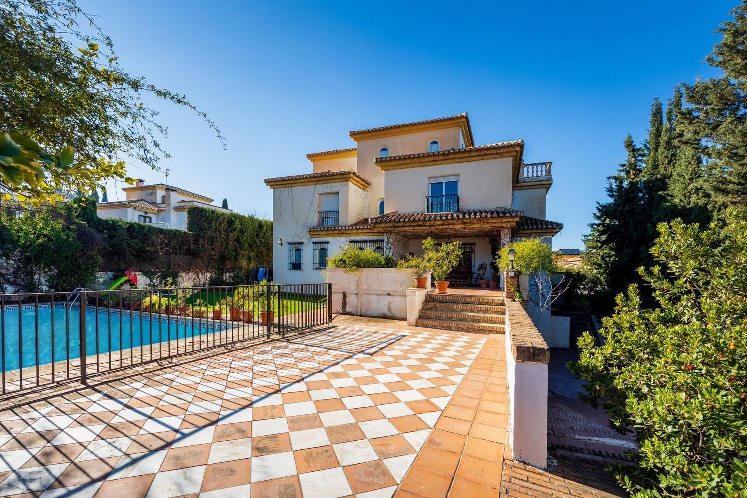 ¡Bienvenido a esta espectacular casa de tres plantas que te dejará sin aliento! Semisótano, con amplio garaje con espacio para hasta tres coches, un acogedor dormitorio y un baño completo. Pero lo mejor de esta planta es el increíble salón con chimenea y barra, perfecto para reuniones con amigos y familiares. Con más de 80 metros cuadrados, .En la planta baja, un baño, cocina totalmente equipada, una despensa y un lavadero. Además, cuenta con una sala comedor y otro salón con chimenea, donde podrás relajarte y disfrutar de la calidez del fuego en los días fríos. Los porches cubiertos están estratégicamente orientados para ofrecerte áreas de descanso tanto en verano como en invierno. Y no podemos olvidar mencionar la impresionante piscina, donde podrás refrescarte y disfrutar de momentos de diversión bajo el sol.Subiendo a la planta primera, dormitorio principal en suite, que cuenta con su propio baño, vestidor y dos terrazas privadas. También hay un dormitorio de invitados en suite con baño privado, línea de armarios empotrados y terraza para disfrutar de vistas panorámicas. Además, hay otros tres dormitorios, todos ellos con balcones y armarios empotrados, así como dos baños completos adicionales.Pero eso no es todo. Esta maravillosa casa cuenta con una planta adicional: la torreta. Aquí encontrarás un torreón mirador-estudio con una terraza de 360 grados, donde podrás deleitarte con vistas panorámicas de tu entorno.Equipada con una caldera de gasoil sectorizada por plantas, lo que garantiza un suministro eficiente y personalizado de calefacción. Además, el salón de la planta baja cuenta con aire acondicionado para mantenerte fresco durante los días calurosos. Suelos son de mármol combinados con parquet de roble, creando un ambiente acogedor y sofisticado. Las ventanas climalit, puertas lacadas en blanco de madera maciza completan el conjunto, brindando a la casa un estilo moderno y una excelente calidad. Esta casa es una oportunidad única para vivir.NOTA: El PVP indicado no incluye ni impuestos ni gastos de escritura, tampoco honorarios de la agencia. Las superficies indicadas en esta página tienen carácter descriptivo y son aproximadas. Esta vivienda se vende sin muebles.