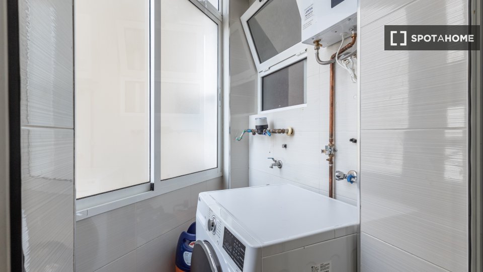 Este apartamento compartido cuenta con seis habitaciones y está completamente amueblado, lo que proporciona una experiencia de vida cómoda. El apartamento incluye una cocina equipada con electrodomésticos esenciales como horno y lavavajillas, lo que facilita la preparación de comidas. También cuenta con un balcón, lo que le permite disfrutar de momentos al aire libre con total privacidad. Todos los gastos de luz, agua, gas y wifi están incluidos, lo que garantiza una estancia sin complicaciones. Tenga en cuenta que el apartamento se comparte con otros inquilinos y no es apto para parejas. Está disponible para profesionales y estudiantes, lo que garantiza un ambiente profesional y de estudio.