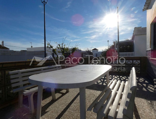 VENTA INMOBILIARIA PACO TENORIO- VENTA CHALET EN 3ª LÍNEA DE PLAYA DE LA ANTILLA. (ZONA CHIRINGUITO LEIVA)Fantástico chalet en venta en una zona excelente de La Antilla, en tercera línea de playa y cerca de chiringuitos y ocio. La parcela cuenta con 319m2 y la vivienda con 103m2 construidos. Dispone de 5 dormitorios y 2 baños distribuidos cómodamente en una sola planta.Consta de terraza delantera de unos 40m2 con porche. Al entrar a la vivienda encontramos el amplio salón, con zona comedor y zona de estar con chimenea. Un espacio acogedor donde podrás disfrutar de todas las horas de sol con su orientación Sur. La cocina está totalmente equipada y cuenta con acceso a un patio interior con tendedero y cuarto de almacenaje. La vivienda cuenta con 5 dormitorios, todos ellos espaciosos y con armarios empotrados. Los dos baños son completos, uno de ellos equipado con bañera y bidet y el segundo con plato de ducha.Además, cuenta con un gran patio interior de unos 60m2 con garaje cubierto con 2 plazas de coches.El chalet se encuentra en una zona con gran demanda. A unos 100 metros de la playa, cerca de chiringuitos, supermercado Dia y a tan sólo 6 minutos andando de la Avenida Castilla, donde podrás encontrar todo el ocio de la zona.¡Llama ahora y concertamos una visita sin compromiso!Paco Tenorio Inmobiliaria es una empresa con más de 30 años de experiencia en el sector. Nuestros valores son la transparencia, confianza y profesionalidad. Para un trámite tan importante como comprar una vivienda, ¡confía en profesionales!**SIN GASTOS DE HONORARIOS PARA EL COMPRADOR**.