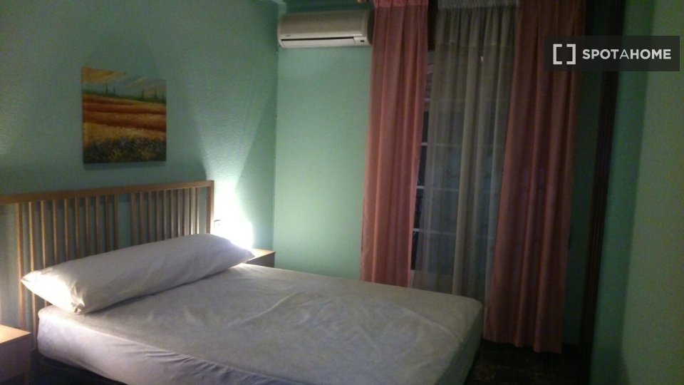 Esta habitación se encuentra en un apartamento compartido de 2 dormitorios en Gran Bulevar, Jaén. El apartamento cuenta con aire acondicionado individual, calefacción eléctrica y está completamente amueblado. Incluye balcón, cocina equipada con fogones y horno, y acceso a la piscina. No se permite fumar ni se admiten mascotas para garantizar un ambiente cómodo para los inquilinos. La propiedad ha sido verificada detalladamente por el verificador de viviendas de Spotahome.