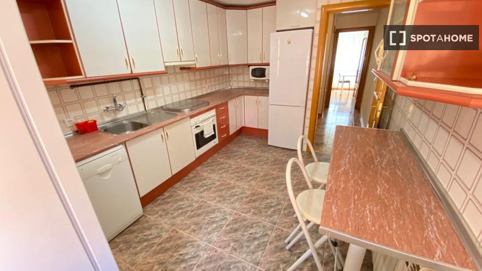 En cuanto a las zonas comunes, la vivienda cuenta con una cocina completamente amueblada y equipada con todos los electrodomésticos (frigorífico, cocina a gas natural, lavadora, caldera, microondas, etc) el menaje necesario para instalarte sin preocupaciones (cacerolas, sartenes, cubertería y cristalería). Asimismo, la propiedad cuenta con dos baños completos con plato de ducha