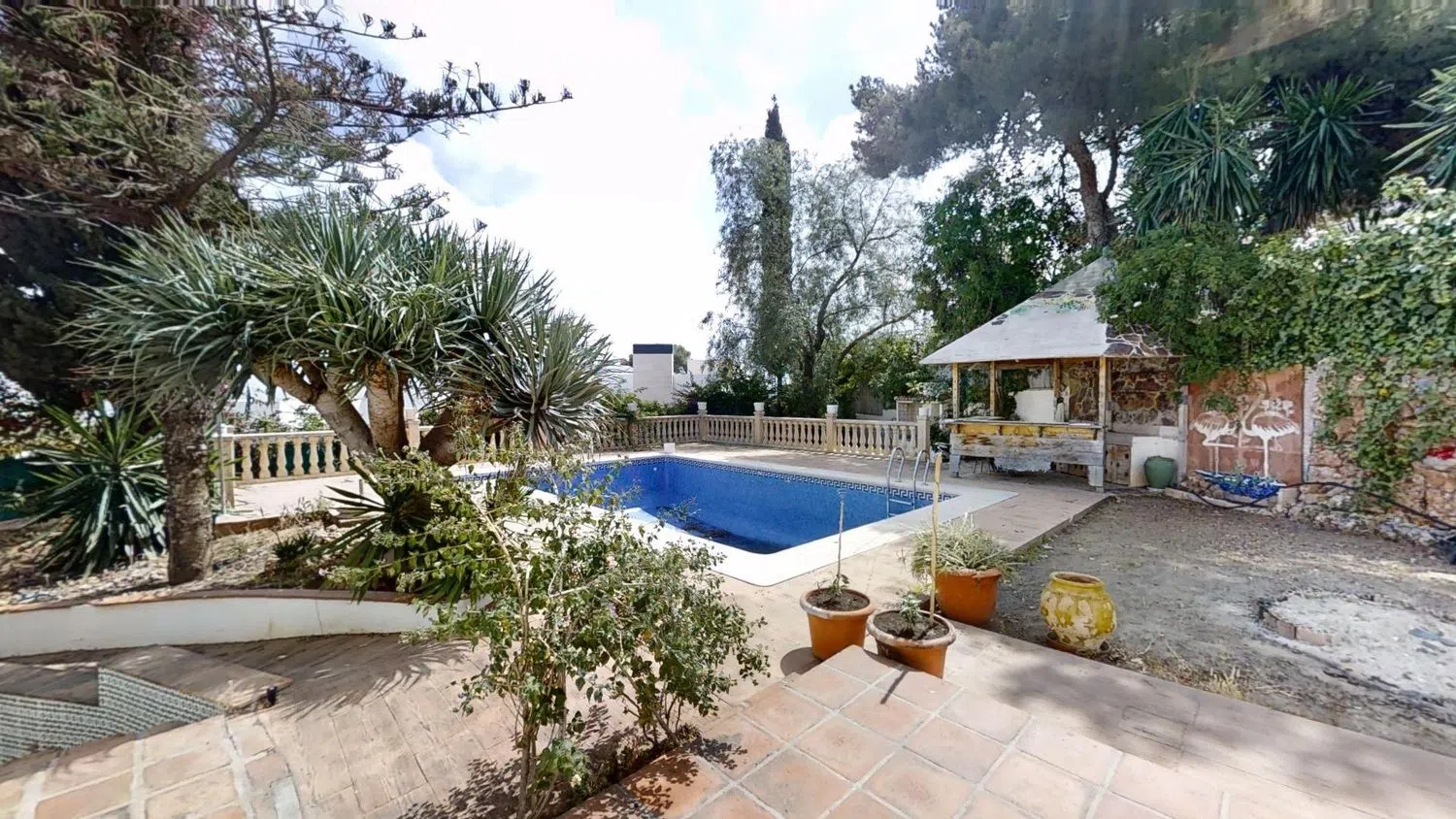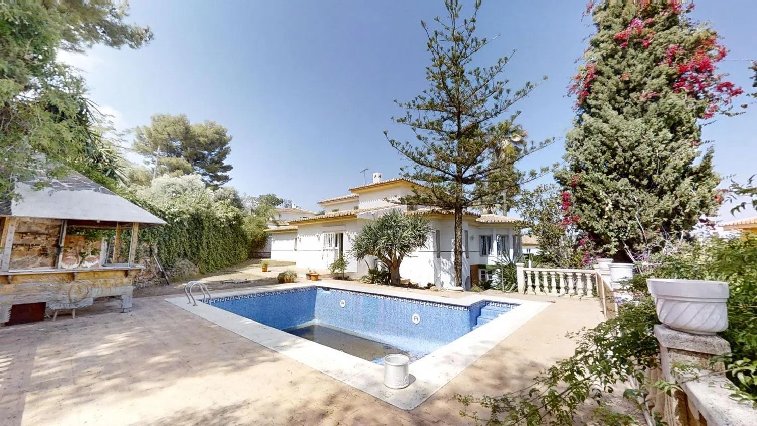 De buitenkant van de villa is even indrukwekkend en biedt: