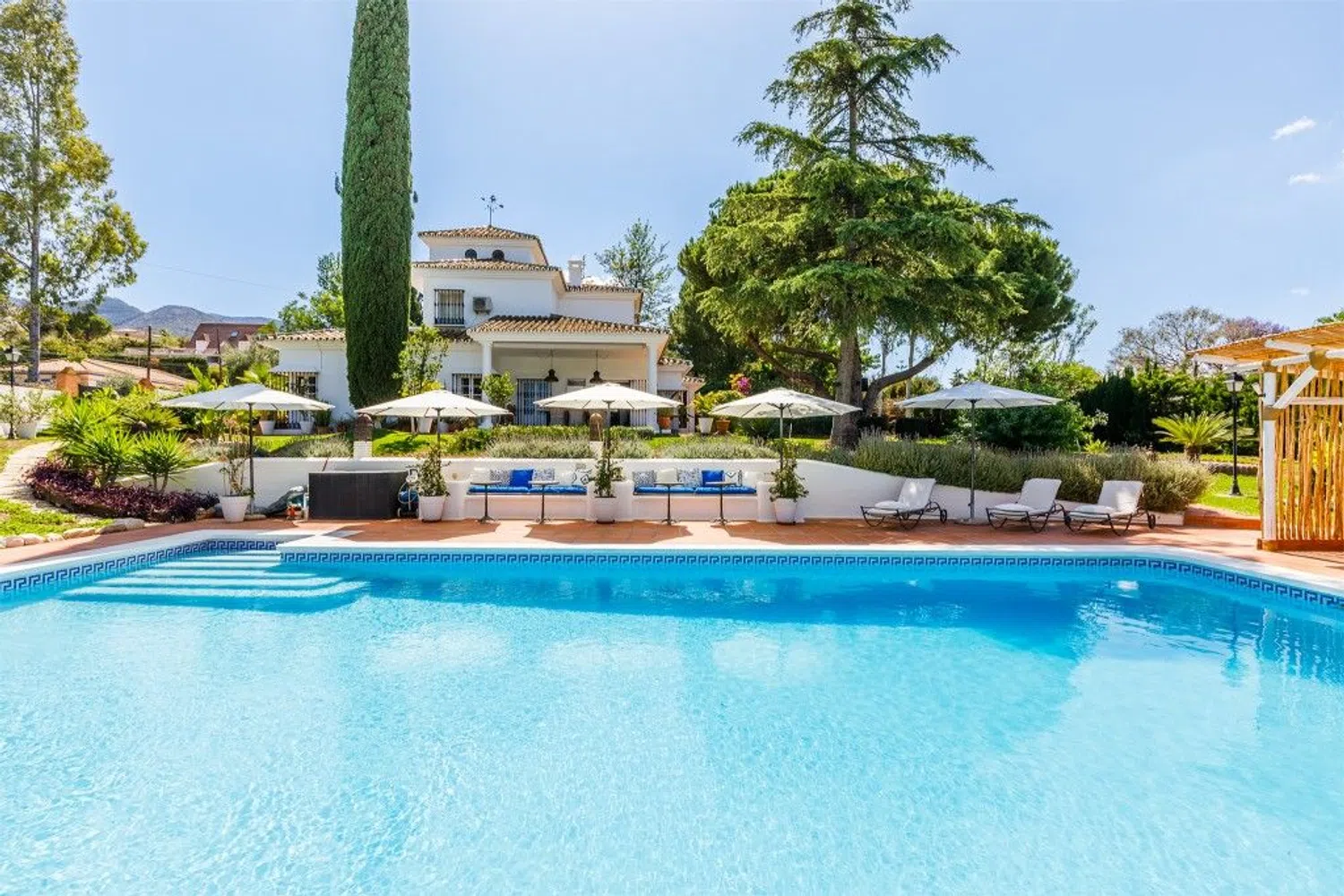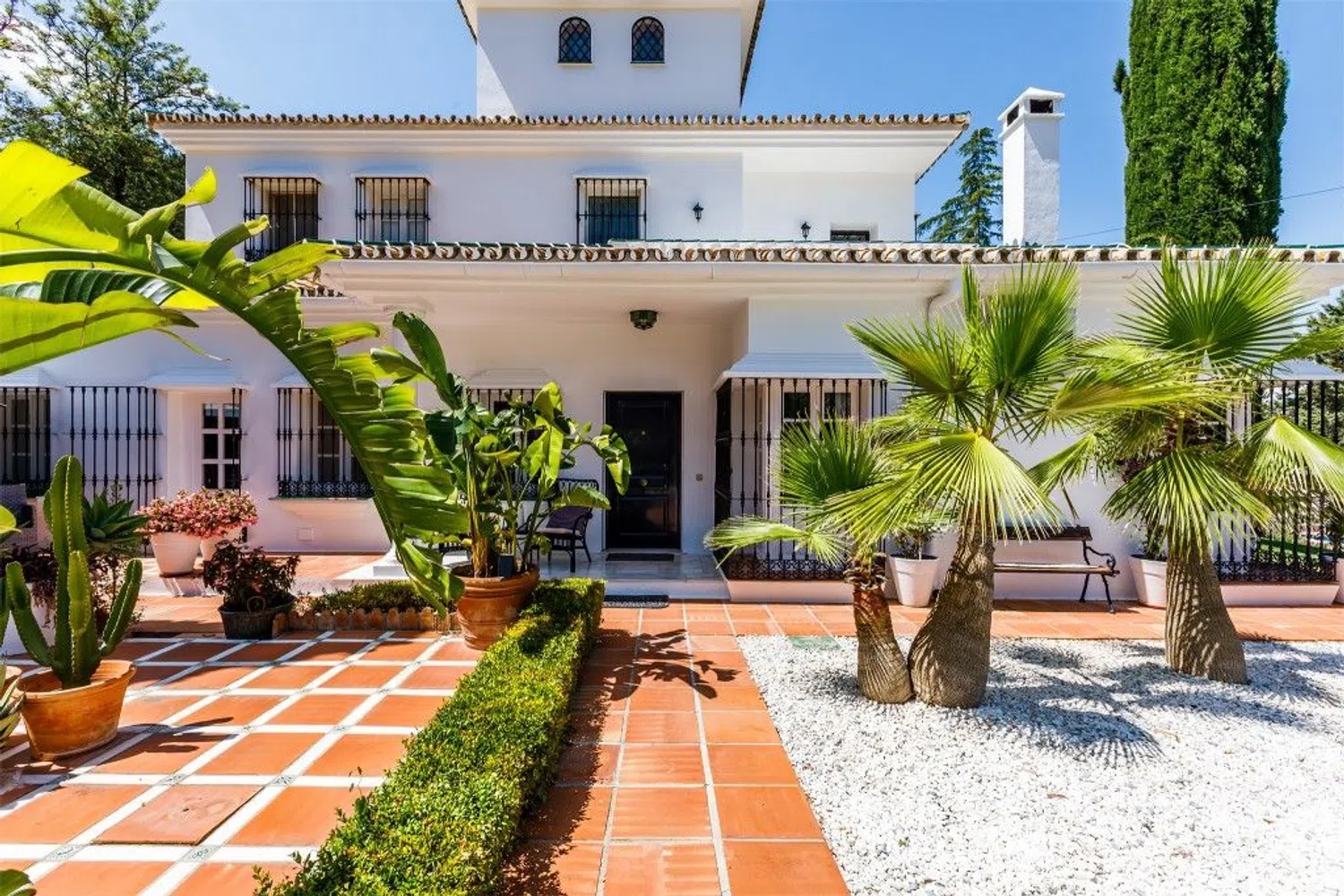 Deze elegante herenhuis, ontworpen in een luxe notariele stijl, bevindt zich in een van de mooiste urbanisaties van de Costa del Sol. De majestueuze woning is gelegen op een spectaculaire kavel van 2.500 m², inclusief een architectonisch ontworpen tuin en een olympisch formaat zwembad van 14 m x 8 m. Naast het zwembad vindt u een strandbar met een comfortabele chill-out zone.