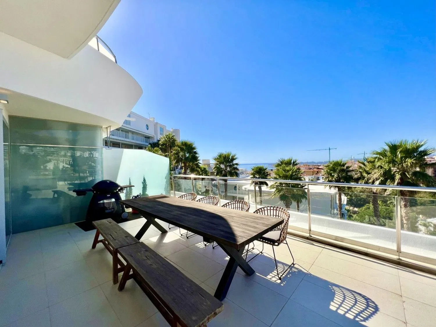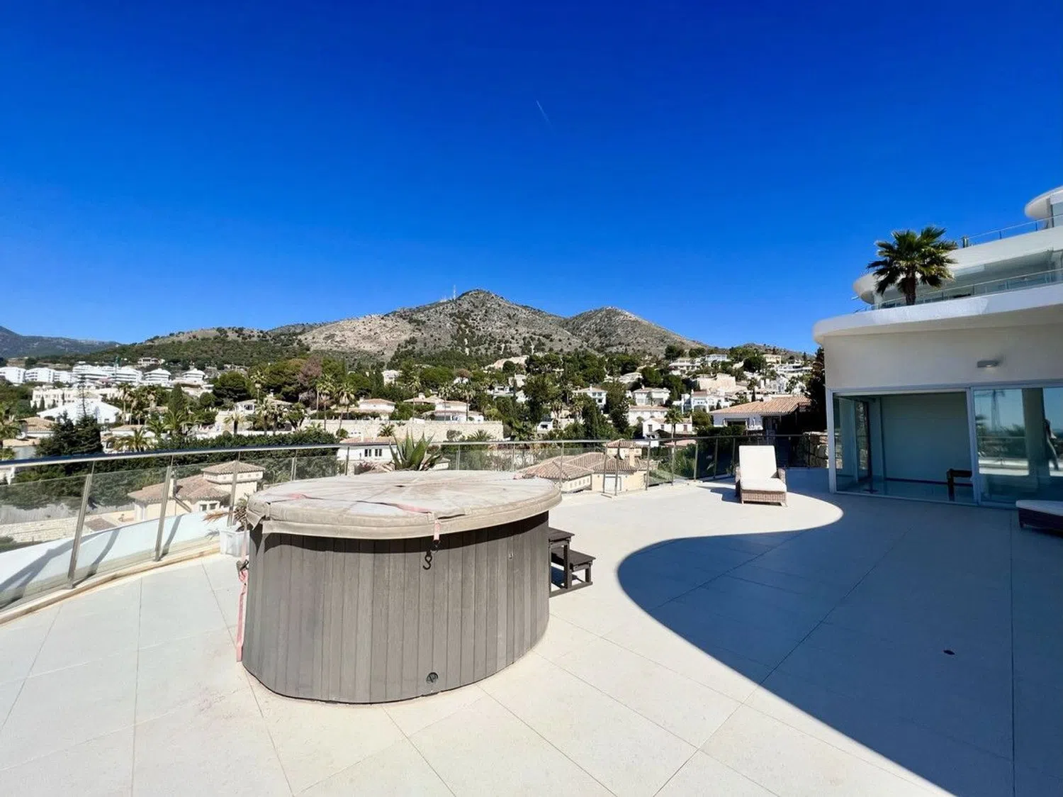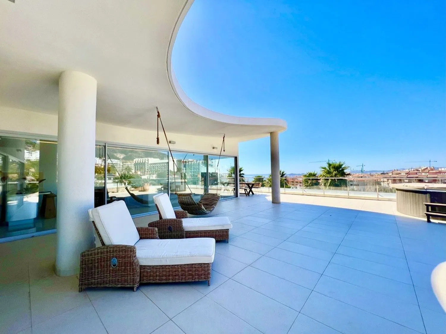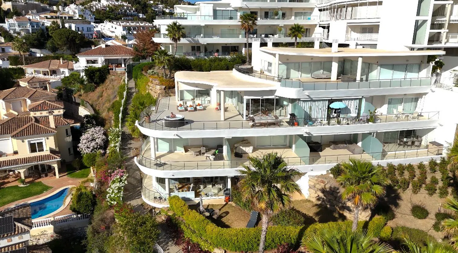 Gloednieuw 2-slaapkamer penthouse in Reserva del Higuerón, met 2 badkamers, ruime woon-eetkamer, volledig ingerichte keuken met Siemens apparaten, wasruimte, houten vloeren, airconditioning en elektrische gordijnen. Beschikt over een terras van 166m² met een hot tub en panoramisch uitzicht op de bergen en de zee. Inclusief parkeerplaats.