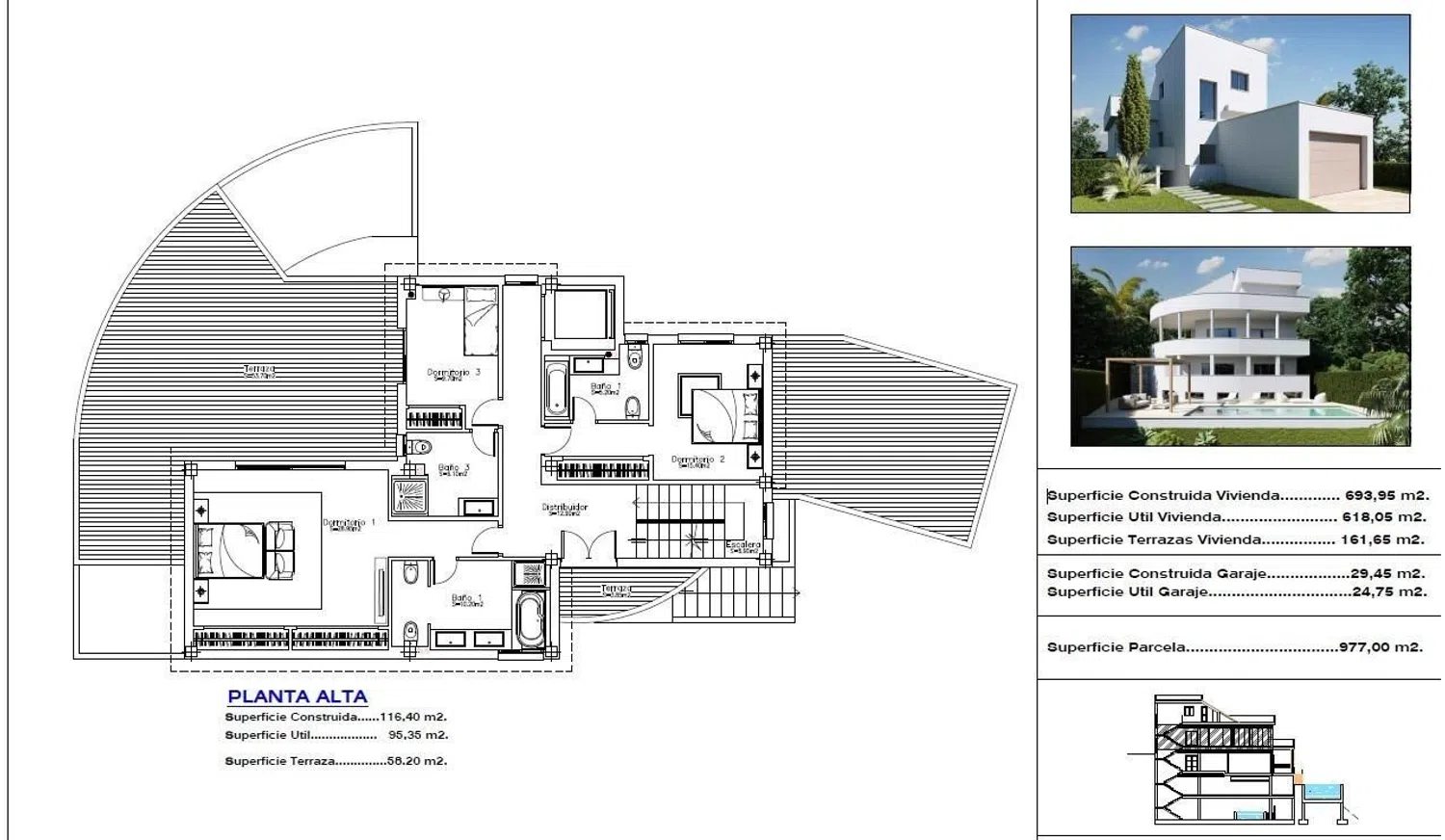 Laatste villa te koop van het project van 3 luxe villa's op steenworp afstand van het strand. De villa bevindt zich in de afrondingsfase van de bouw en wordt volledig afgewerkt opgeleverd, met de mogelijkheid voor de koper om enkele eindmaterialen te kiezen. Een kleine gemeenschap die opvalt door de uitstekende locatie en verhoogde positie. De villa is gericht op het zuiden en zuidoosten en biedt indrukwekkende zeezichten vanuit alle verdiepingen, zelfs vanuit de kelder.