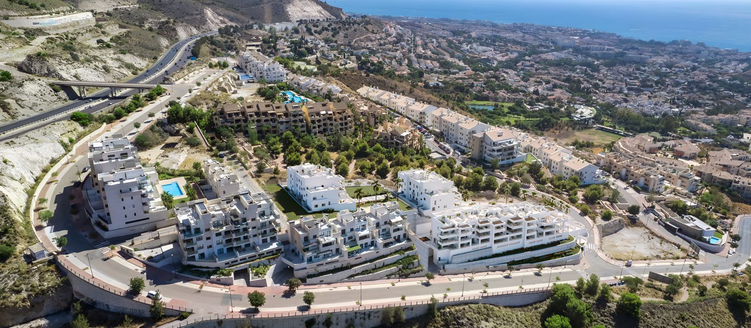 Mane Residences es una exclusiva urbanización privada situada en un lugar privilegiado en Benalmádena. Por su ubicación elevada, cada una de sus vivendas ofrece vistas increíbles al mar y la costa. La disposición escalonada frente al mar Mediterráneo de Mane Residences permite que todas y cada una de las 49 viviendas y 2 adosados disfruten de estancias siempre luminosas, gracias a la luz natural.La Costa del Sol con su gran variedad de paisajes desde el mar hasta la montaña, es desde hace décadas una de las zonas preferidas por visitantes de todo el mundo para hacer turismo o lugar de residencia. Benalmádena es una ciudad cosmopolita que mira al mar desde su Puerto Deportivo, referencia internacional de la náutica y el ocio, o desde la orilla de sus 9 kilómetros de costa y sus 17 playas, su estratégica ubicación y comunicación con Málaga capital, la convierten en una de las ubicaciones más codiciadas en la Costa del Sol.Mane Residences se encuentra a tan solo 1 km del hospital Xanit de Benalmádena. En un radio de 3 km encontrarás el campo de golf de Torrequebrada, el colegio internacional, Selwo Marina, el parque público de La Paloma y el casco antiguo.La inclinación del terreno permite disfrutar de viviendas escalonadas donde sus amplias terrazas ganan protagonismo con sus barandillas de cristal que parecen fundirse directamente con el mar de frente y permiten el máximo aprovechamiento de las vistas y de la espectacular luz solar.En el entorno de la parcela se encuentra una excelente dotación de todo tipo de servicios, médicos, educativos, deportivos y comerciales. Entre ellos destacamos, Benalmadena Golf con su ambiente familiar y distentido, el Hospital Intarnacional Vithas Xanit con su amplia oferta de especialidades médicas, el colegio privado Novaschool Benalmandena y el Polideportivo Municipal de Benalmadena Pueblo.La promoción cuenta un conveniente acceso a la autovía A7, conexión a las principales arterias de la zona y comunicación a las principales vías de transporte público.