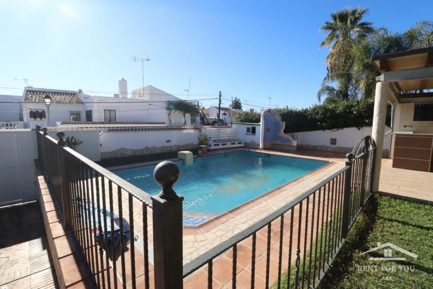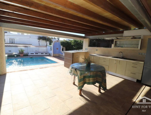 Estupendo chalet indepndiente situado en las afueras de la población, en urbanización, rodeada de todo tipo de comercios y servicios, excelentemente comunicada con Marbella o con la capital malagueña.La propiedad cuenta con portón de entrada automático, una estupenda piscina, amplia zona de barbacoa techada, un cuarto de baño exterior con plato de ducha, cochera para un vehículo, porche techado; Además tiene placas solares para el suministro electrico de la misma.Interiormente la vivienda se encuentra semiamueblada y cuenta con aire acondicionado en todas sus estancias.Se encuentra distribuida en 2 plantas de la siguiente forma:En planta baja un amplio salón, una gran cocina totalmente equipada, lavadero, 3 habitaciones con armarios empotrados, u cuarto de baño con bañera y pequeño patio interior.En 1ª planta una gran estancia totalmente diáfana de unos 80 metros con un cuarto de baño con plato de ducha, ideal como zona de trabajo indepndiente de la casa o como apartamento para invitados.Se acepta alguna mascota.Fianza de 2 meses.