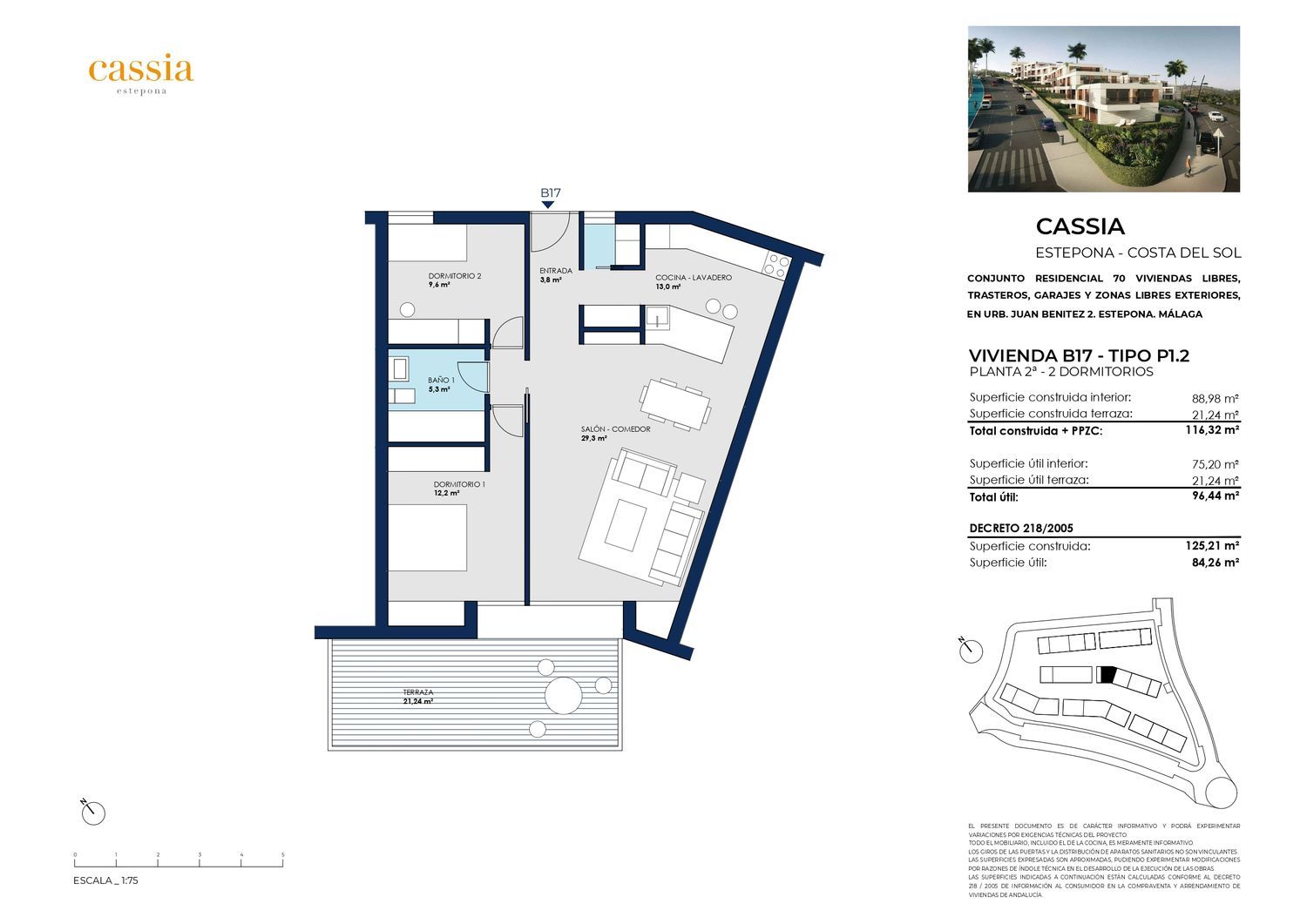 Descubre en Estepona el nuevo área de desarrollo donde construimos para ti un residencial único que se adapta a todo lo que buscas en la Costa del Sol.Cassia Estepona representa diseño, vanguardia, ecología y distinción. Es un espacio singular con una firme apuesta por la arquitectura, el paisajismo, las zonas verdes, las zonas comunes y la calidad en todos los sentidos.La ubicación de Cassia Estepona supone la justa medida entre vivir en un residencial privado y la cercanía del centro urbano y sus playas, comercios, centros médicos, educativos y de ocio. El proyecto apuesta por la máxima calificación energética lo que supone un importante ahorro energético cuidando además de nuestro entorno.En Cassia Estepona, compuesta por 70 magníficos pisos, puedes elegir tu casa de uno a cuatro dormitorios en una construcción de 3 alturas, donde todas las unidades gozan de amplias terrazas o jardines, y unos espacios comunitarios pensados para disfrutar de tu tiempo al máximo en la piscina, el gimnasio o en las salas comunitarias. Todas las viviendas tienen trastero y una o dos plazas de garaje subterráneo.Despierta cada día en Cassia Estepona, que los rayos del sol te llenen de salud y que el frescor de las plantas y el agua te acaricie.