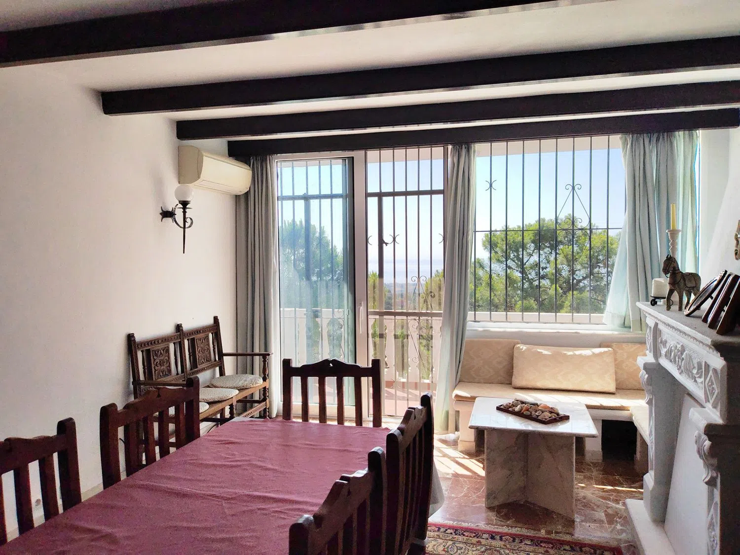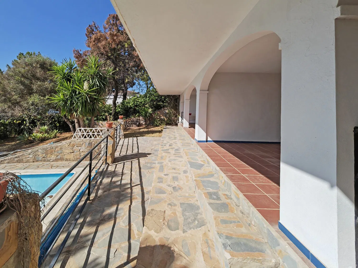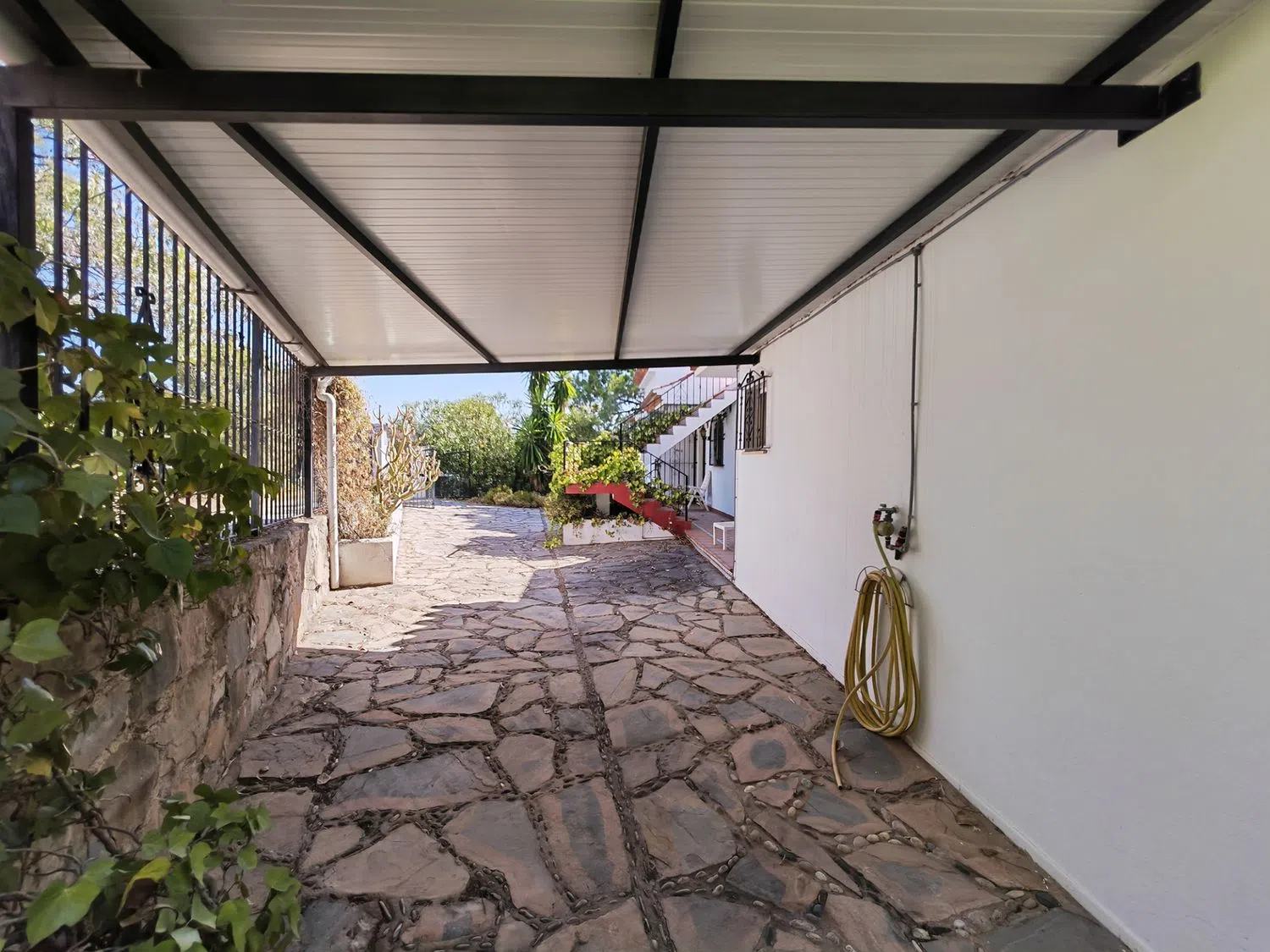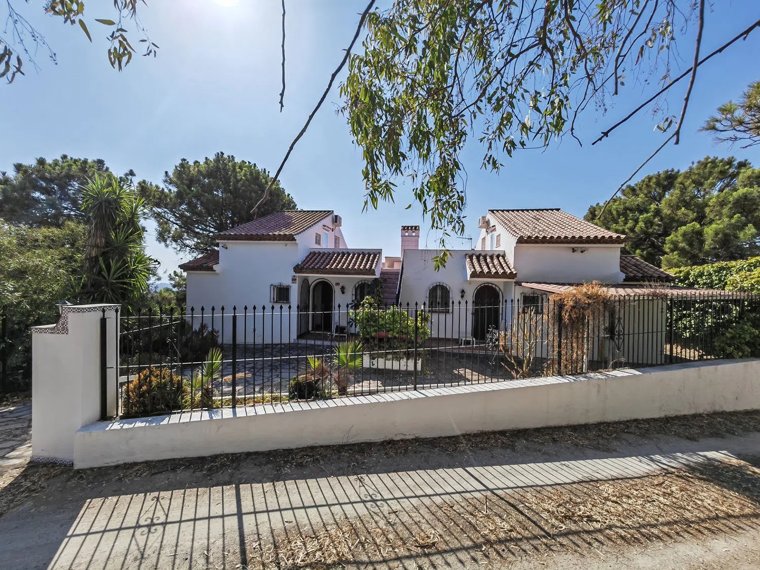 De begane grond beschikt over twee spiegelbeeldige eenheden, elk met hun eigen keuken, een woonkamer met open haard en drie slaapkamers en suite, ideaal voor grote gezinnen, gasten of als onafhankelijke verhuureenheden. De bovenste verdieping herbergt twee aparte studio-appartementen, elk met een slaapkamer, een badkamer en toegang tot een solarium waar de fascinerende uitzichten nog indrukwekkender zijn. Voor degenen die op zoek zijn naar veelzijdigheid, biedt de begane grond naast het aantrekkelijke zwembad een twee open ruimtes, perfect voor het creëren van extra woonruimtes, meer slaapkamers of zelfs een privé-entertainment gebied. Naast het bestaande oppervlak van de woning is er nog meer potentieel: een aparte residentiële kavel gelegen aan de achterzijde van de woning, die meer dan 3.000 vierkante meter ruimte biedt. Deze kan worden behouden voor extra privacy, waardoor een grotere tuin-oase ontstaat, of afzonderlijk worden verkocht, aangezien hij profiteert van zijn eigen toegangsweg. Afgezien van de panoramische ligging en de royale indeling beschikt de woning over een privégarage met ruimte voor twee voertuigen, wat zorgt voor praktisch gemak.