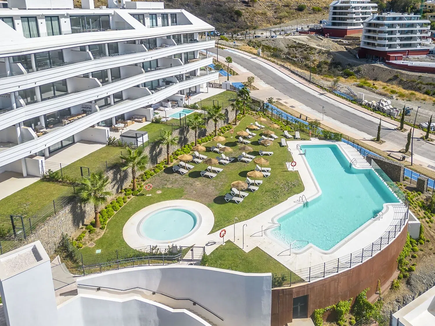 Bewoners kunnen genieten van twee grote zwembaden, mediterrane tuinen en de nabijheid van de prachtige stranden. Het nabijgelegen hotel biedt exclusieve diensten zoals spa's, padelbanen, yogalessen en hoogstaande restaurants.