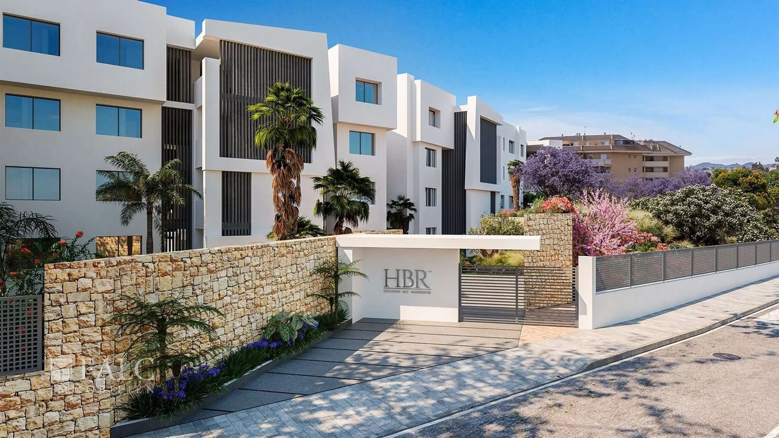 Residencias Bahía del Higuerón se encuentra en la privilegiada zona de El Higuerón en Fuengirola. La ubicación es excelente: A tan sólo 350 metros del complejo se encuentra la playa de El Carvajal. Está muy cerca de numerosos servicios y lugares de ocio y a sólo 20 minutos del aeropuerto de Málaga. El complejo residencial, con orientación suroeste, consta de un total de 60 viviendas con vistas al mar. Hay diferentes tipos de pisos para elegir: Pisos de 2 dormitorios y 2 baños, pisos de 3 dormitorios y 2 baños y pisos de 3 dormitorios y 3 baños. Todas las viviendas disponen de dos plazas de garaje y un trastero incluidos en el precio. Le impresionarán las hermosas zonas comunes del complejo, que ocupan más de 8.000 metros cuadrados. Entre ellas se incluyen una piscina climatizada para adultos, una piscina infantil, un jacuzzi climatizado, un gimnasio totalmente equipado, un espacio de coworking, Wi-Fi comunitario, un mirador de 127 metros cuadrados y zonas ajardinadas con caminos interiores y paneles fotovoltaicos que contribuirán a la sostenibilidad y reducirán el consumo eléctrico de la comunidad.