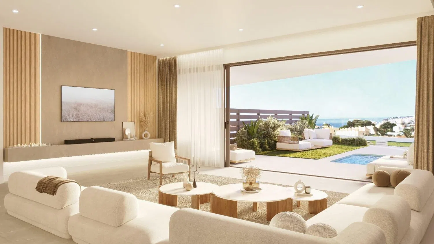 Ontdek exclusieve huizen in een prachtig complex dicht bij de zee in Fuengirola. Deze huizen bieden drie slaapkamers met drie badkamers, een royale woonkamer en keuken, en een handige wasruimte. Elk huis beschikt over een eigen tuin, optionele privézwembaden en een terras met uitzicht op de zee, bergen en/of groene gebieden.