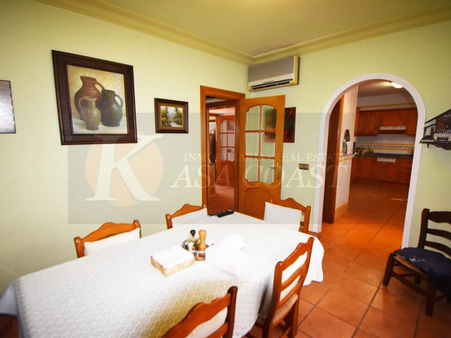 De keuken is onafhankelijk en volledig uitgerust, met een bijkeuken voor extra gemak. Geniet daarnaast van een charmante Andalusische patio waar je in de buitenlucht kunt ontspannen. Climalit-ramen zorgen voor uitstekende akoestische en thermische isolatie. Tot slot beschikt de woning over een afgesloten garage voor één auto, voor extra comfort en veiligheid.