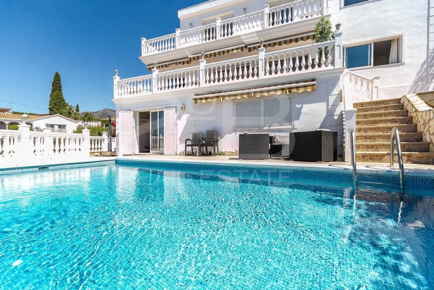 IMPRESIONANTE VILLA met panoramisch uitzicht OP ZEE te koop in Fuengirola. Deze villa heeft potentieel voor vakantieverhuur. Deze woning is perfect voor een gezin met kinderen of als investering, biedt comfort en veel natuurlijk licht. Het is een vrijstaand huis met uitzicht op de zee; op heldere dagen en in de zomer is zelfs Marokko zichtbaar. De villa is verdeeld over 2 niveaus plus een gastenappartement. Met 5 slaapkamers, 2 badkamers, een uitgeruste keuken, kleerkasten en kleedkamer. Airconditioning in alle slaapkamers en woonkamer. Het gastenappartement heeft 1 slaapkamer, 1 badkamer, een woonkamer en een open keuken. Privézwembad en privé tuin.