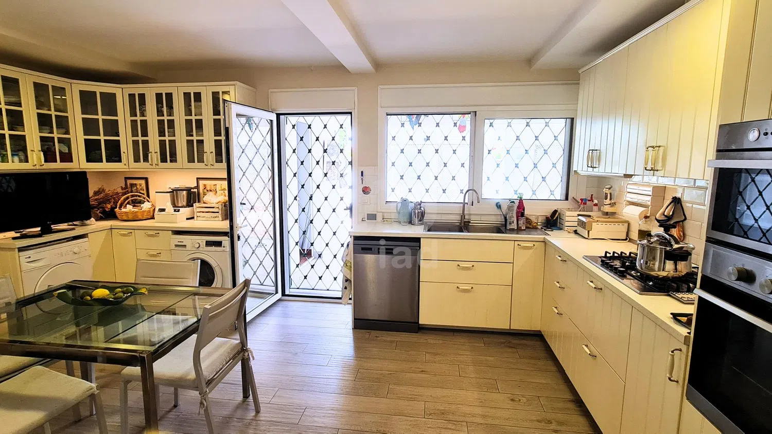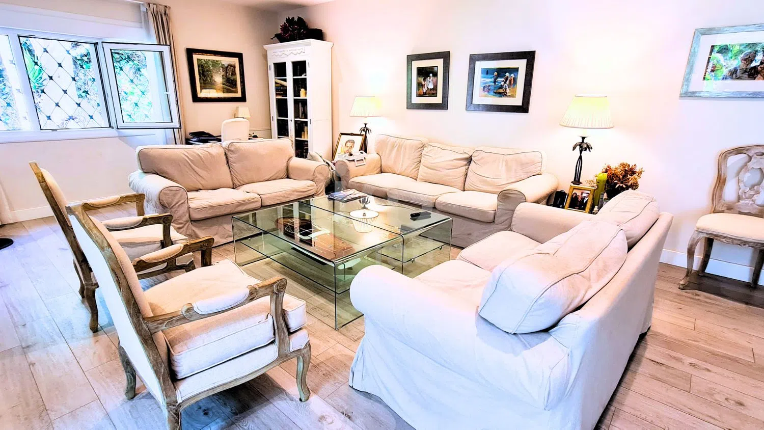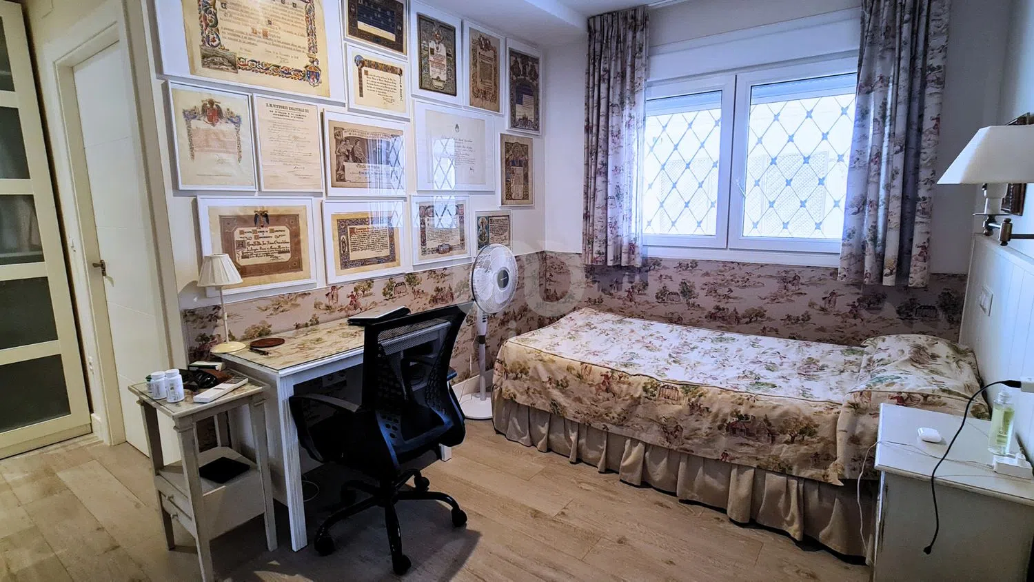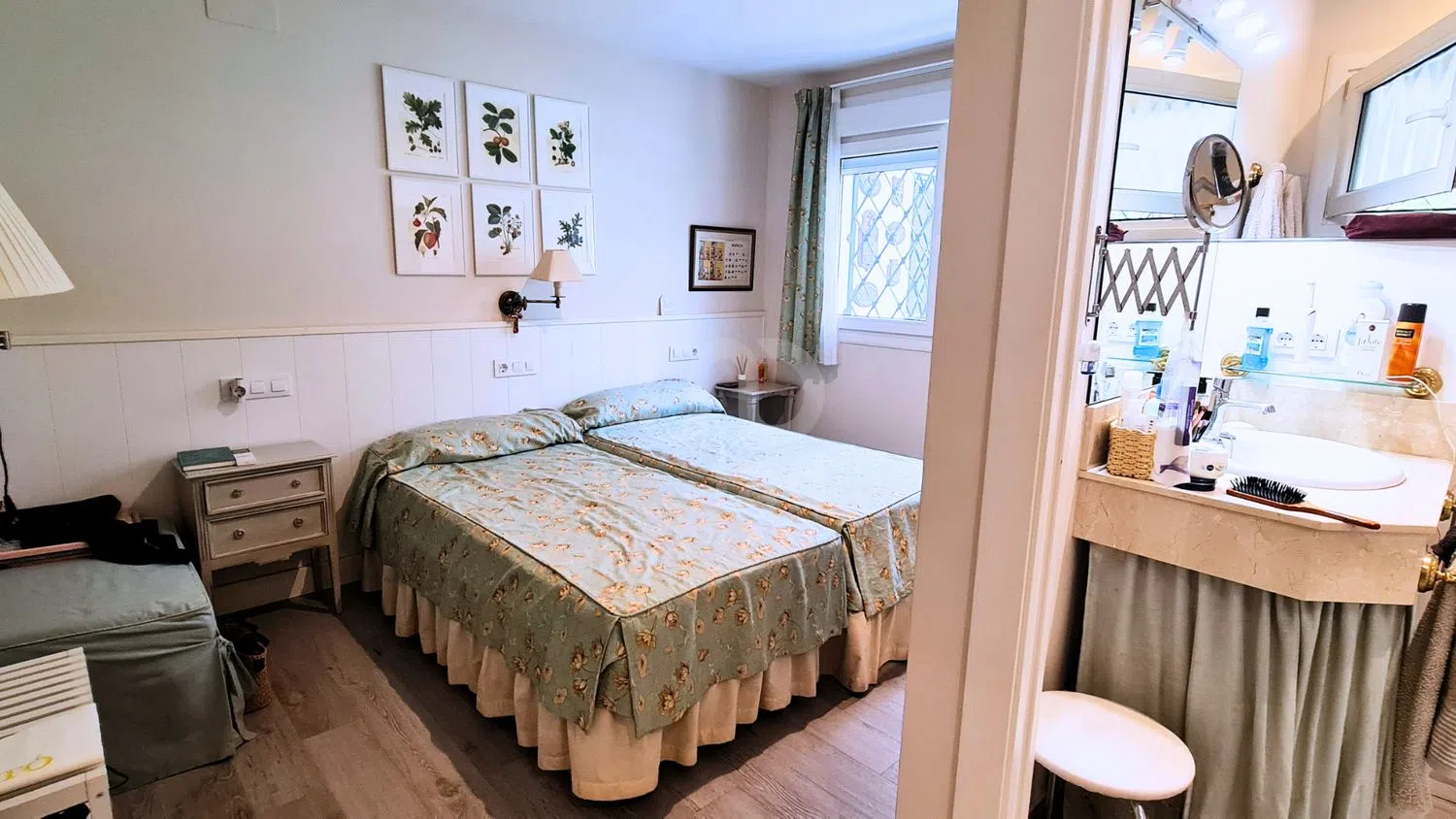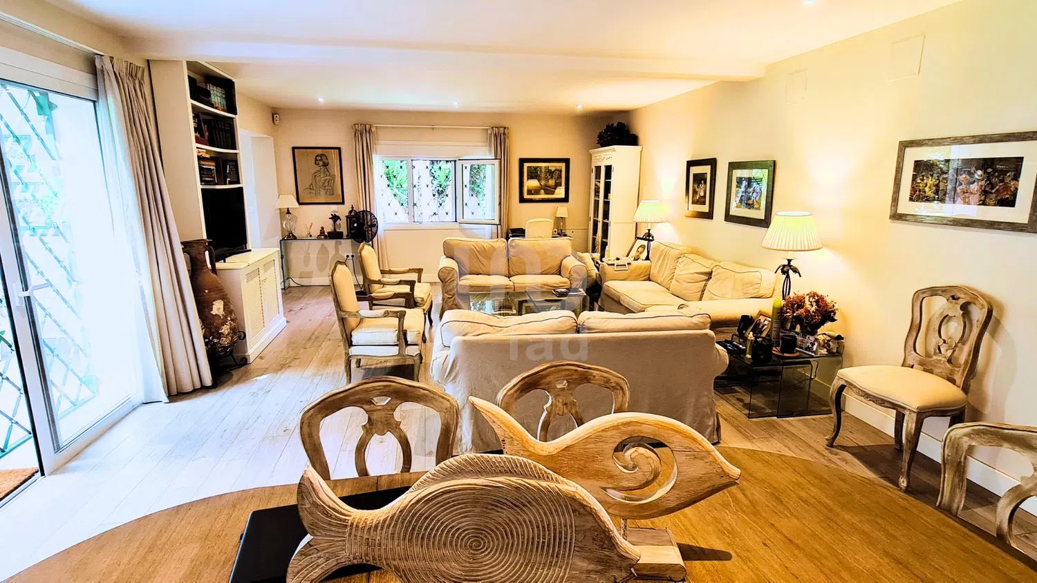 De huidige woning op het perceel heeft een oppervlakte van ongeveer 300 m² en beschikt over de volgende indeling: - 3 slaapkamers, elk met een eigen badkamer. - Hoofdslaapkamer: Met twee badkamers en inloopkast. - Gastenbadkamer. - Dienstkamer met eigen badkamer. - Airconditioningsysteem: Airconditioning in alle hoofdslaapkamers en centrale vloerverwarming in het hele huis.