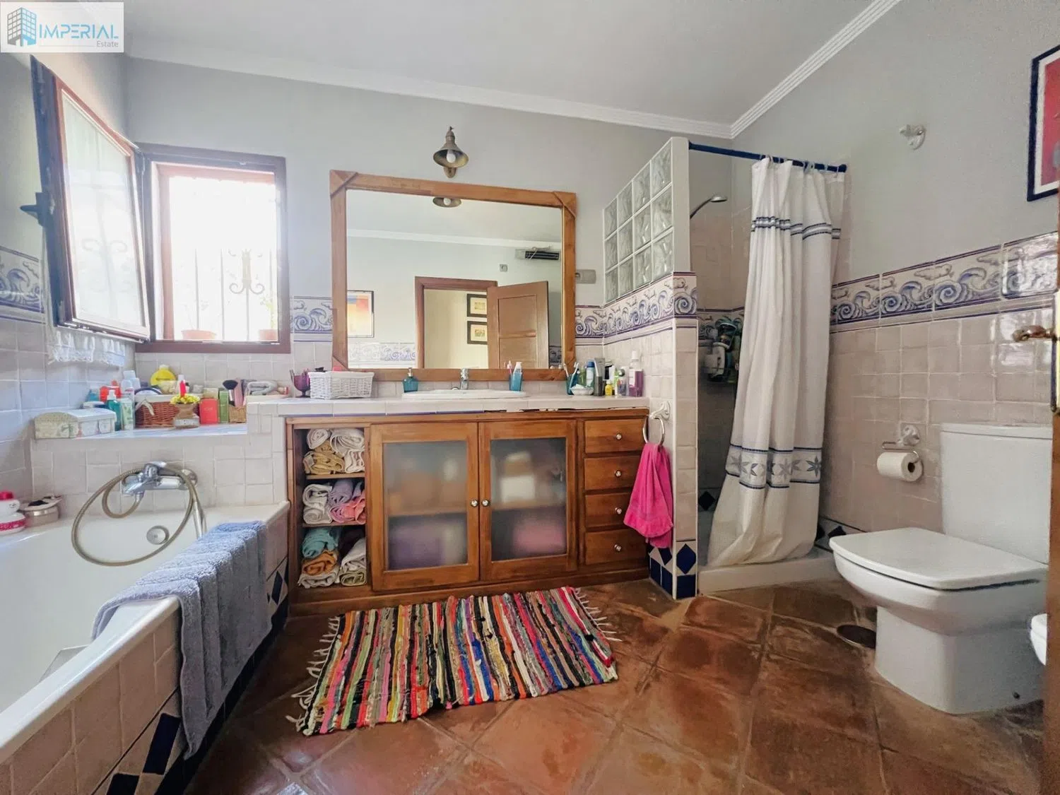 Het hoofdverblijf heeft 3 andere slaapkamers en twee badkamers, een ruime woonkamer met open haard, een volledig uitgeruste keuken, klein washok en aparte eetkamer. Zowel de woonkamer als de eetkamer hebben toegang tot het ruime achterterras met volledige privacy en de hele dag zon. Het pand is in uitstekende staat, alle kamers en ruimten kijken uit op de buitenomgeving.