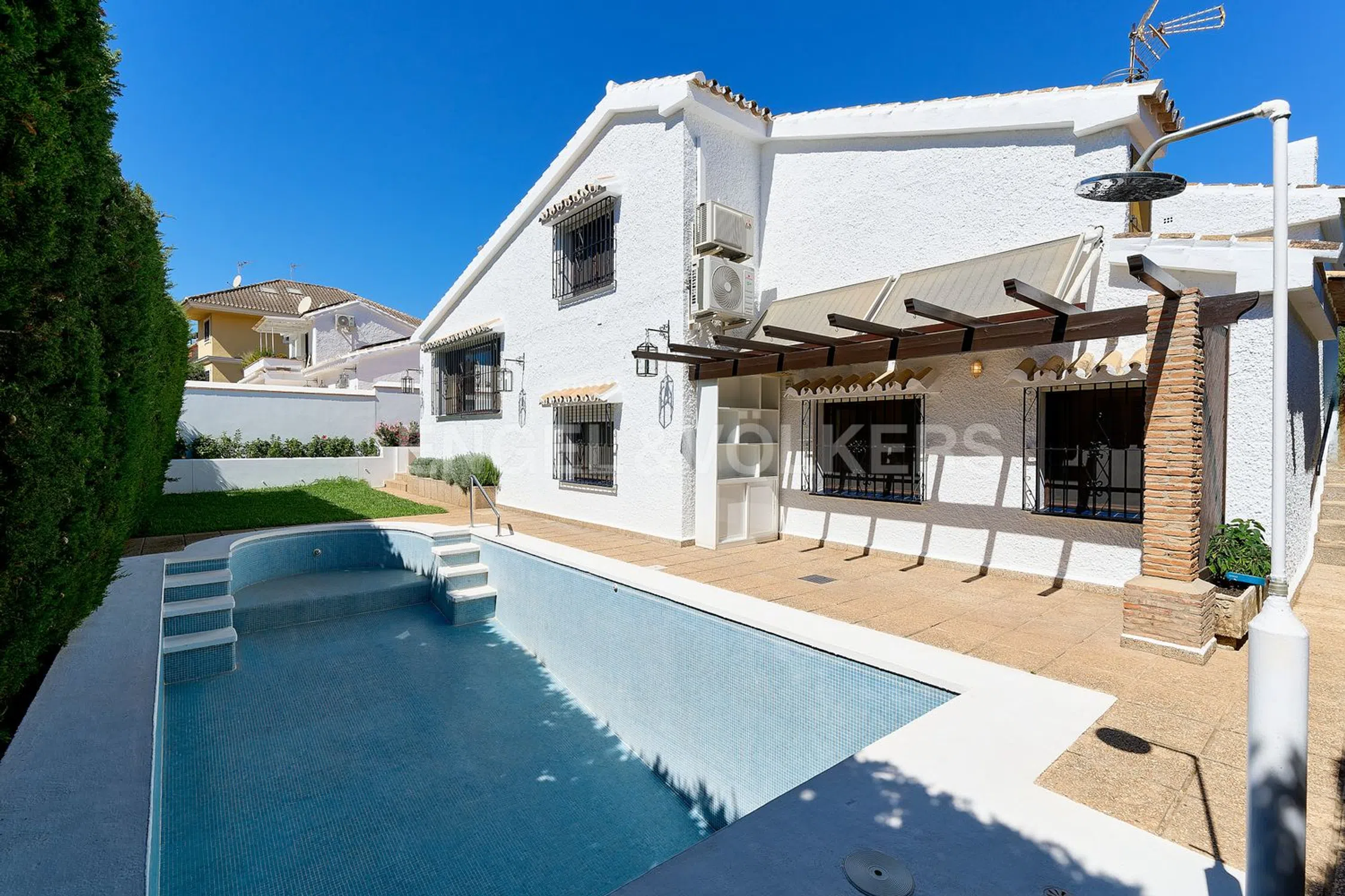 Casa independiente de 3 dormitorios con piscina privada en un barrio tranquilo en el centro de Fuengirola Ubicada en el complejo residencial de Molino de la Condesa, esta casa independiente de 3 dormitorios y 2.5 baños ofrece una vida independiente en el centro de Fuengirola. Situada en una calle tranquila sin tráfico y con acceso restringido de estacionamiento, la propiedad proporciona un alto nivel de privacidad mientras se encuentra a solo 7 minutos a pie de la playa y el centro de la ciudad. La parcela de 367 m² incluye una superficie construida de 163 m², con acceso conveniente a servicios esenciales como transporte público, farmacias, escuelas, centros de salud, áreas comerciales y instalaciones recreativas. La zona también ofrece fácil conectividad a la autopista y proximidad a restaurantes, el Centro Comercial Miramar, el Bioparc Fuengirola y los servicios del gobierno local. La casa está distribuida en dos niveles y cuenta con un amplio salón-comedor de más de 60 m² con techos altos, vigas de madera expuestas, chimenea y biblioteca de madera maciza. La cocina rústica está completamente equipada e incluye un fregadero Villeroy & Boch. Dos dormitorios están ubicados en la planta baja, uno con sala de estudio, mientras que el dormitorio principal en el piso superior incluye un baño en suite y vestidor. Las características interiores adicionales incluyen un aseo de invitados, dos cajas fuertes, armarios empotrados forrados de madera machihembrada, escalera de madera artesanal, suelos de Gres de Castilla, mosquiteras en todas las ventanas y aire acondicionado en la sala de estar y el dormitorio principal. Los dormitorios de la planta baja incluyen calefacción eléctrica, y las persianas están instaladas en los tres dormitorios. Las comodidades exteriores incluyen una piscina privada de 10 x 4 m acabada en azulejos de mosaico azul, un porche y un jardín con barbacoa integrada. La casa también incluye un tanque de agua potable de 3,000 litros con motor, un sistema de sal microphos para descalcificar las tuberías y un sistema solar de agua caliente con un tanque acumulador de 500 litros. El garaje cerrado cuenta con una puerta de seguridad eléctrica. No perteneciente a ninguna comunidad, la propiedad está libre de cuotas comunitarias, ofreciendo mayor independencia y menores costos continuos. Esta ubicación céntrica pero tranquila, combinada con un diseño funcional y características prácticas, hace que la propiedad sea adecuada tanto para residencia principal como para inversión a largo plazo. Esta encantadora casa ofrece la combinación perfecta de comodidad y estilo, estratégicamente ubicada junto al Castillo Sohail, a solo un corto paseo de la playa. Con una ubicación privilegiada, esta propiedad te sitúa a solo 20 minutos de Marbella y del aeropuerto de la Costa del Sol, facilitando viajar y explorar la región. También disfrutarás de la comodidad de tener tiendas y servicios a mano, lo que te permitirá vivir una vida diaria sin complicaciones.