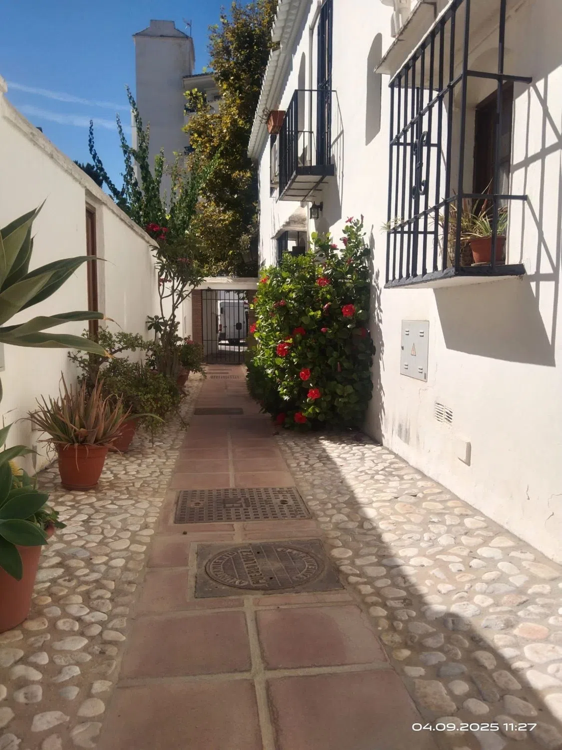 Adosado Pueblo López, zona muy demandada por su tranquilidad y cercanía al centro de Fuengirola, consta de 2 plantas, planta baja con cocina independiente con posibilidad de abrir al salón, cuarto de baño, chimenea, acceso a patio privado de 30 m2 con cuarto de lavandería o trastero, aire acondicionado en el salón, planta de arriba con 3 dormitorios y cuarto de baño, todos los dormitorios tienen armarios empotrados, en la comunidad hay plazas de aparcamiento privadas para los vecinos. En el precio no están incluidos los gastos de notaría, impuestos de trasmisiones, actos jurídicos documentados y registro. This Pueblo López townhouse, in a sought-after area due to its tranquility and proximity to the center of Fuengirola, consists of two floors. The ground floor features a separate kitchen that can be opened to the living room, a bathroom, a fireplace, and access to a 30 m2 private patio with a laundry room or storage room. Air conditioning in the living room is provided. The upper floor features three bedrooms and a bathroom. All bedrooms have built-in wardrobes. The community also has private parking spaces for residents. Notary fees, transfer tax, documented legal acts, and registration fees are not included in the price. [IW].
