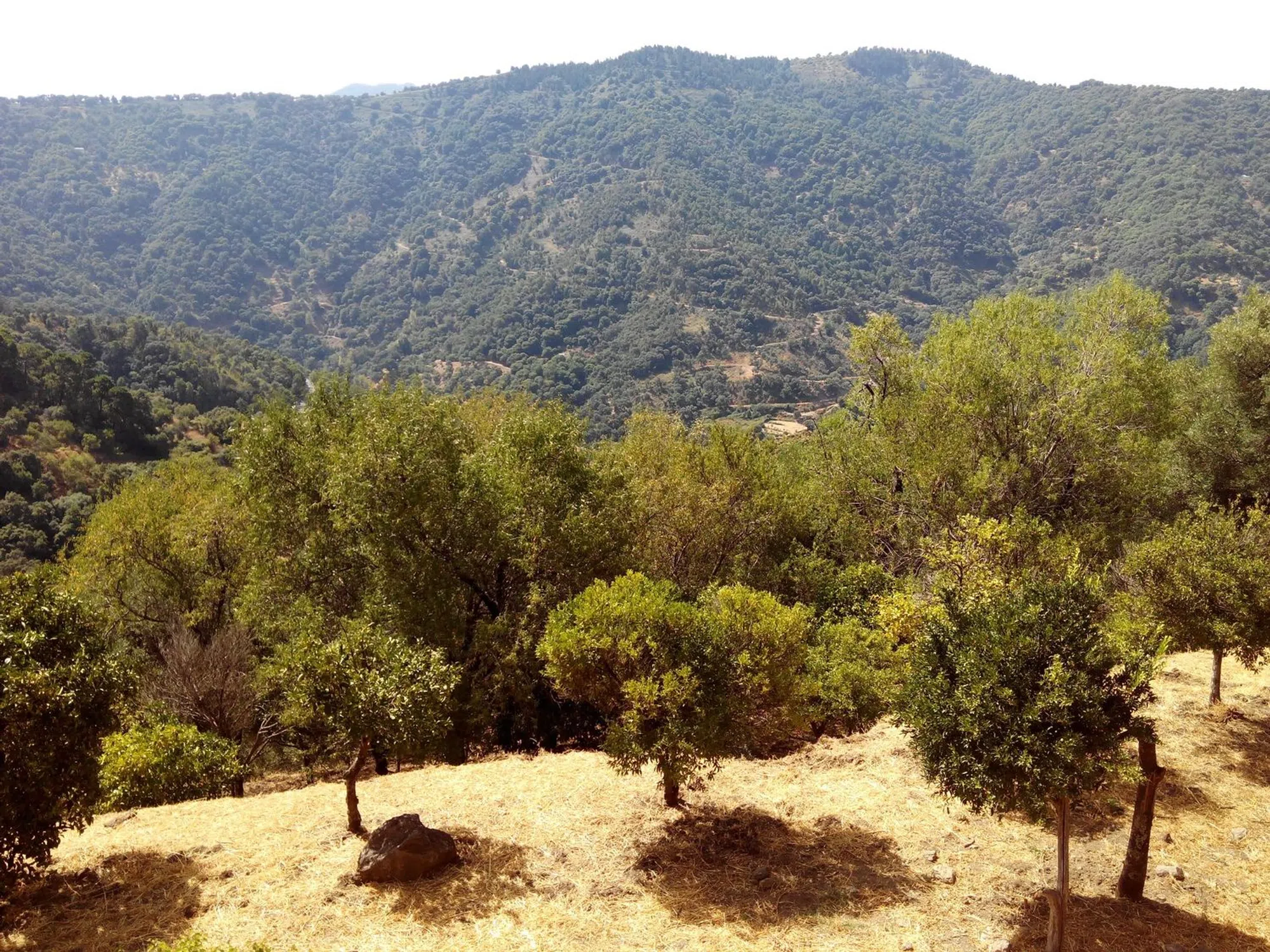 Er zijn bomen zoals sinaasappelbomen, notenbomen, kersenbomen, kastanjebomen, amandelbomen, olijfbomen, kurkeiken, granaatappelbomen en andere fruitbomen. Rechtstreekse grindweg naar het huis.