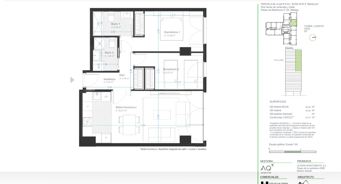 Als je overweegt te wonen in een iconisch gebouw met het beste uitzicht op Málaga, aarzel dan niet om meer informatie aan te vragen over de beschikbare woningtypes. Met prijzen van 257 000 € tot 426 000 €, oppervlakten die variëren van 58 m² tot 100 m² en opties van 1 tot 3 slaapkamers, vind je zeker de perfecte optie voor jou.