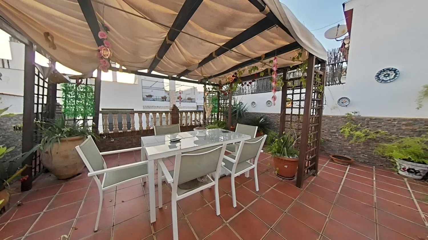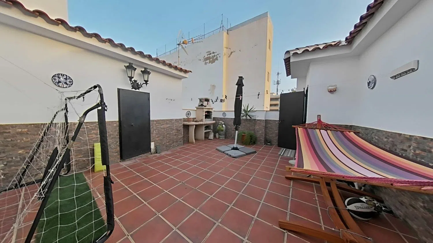 De bovenste verdieping herbergt een indrukwekkend dakterras van 70 m². Dit biedt een barbecue, een pergola en een opslagruimte, ideaal voor bijeenkomsten en feesten.