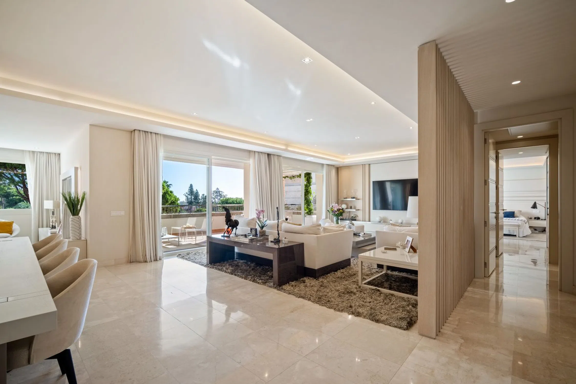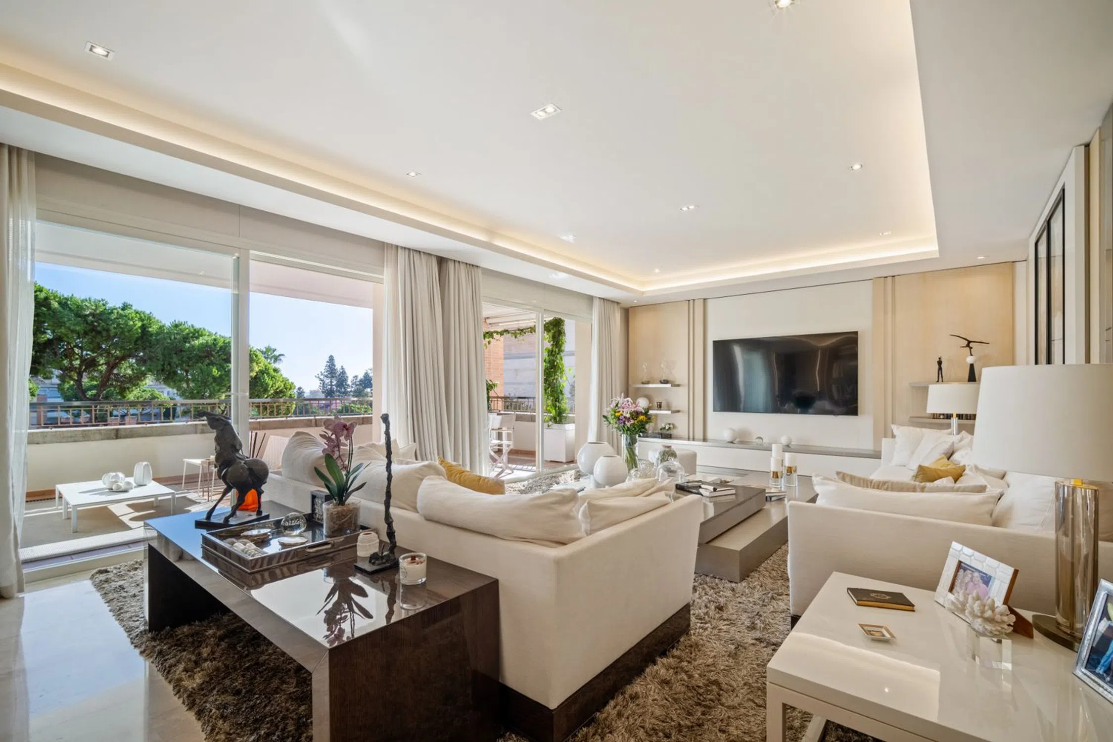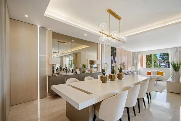 Ubicado en la exclusiva comunidad cerrada de La Trinidad, este impresionante apartamento doble ofrece la combinación perfecta de espacio, estilo y sofisticación en una de las direcciones más codiciadas de Marbella. A tan solo unos minutos de Puente Romano, Marbella Club y la playa, disfruta de una ubicación privilegiada en la Milla de Oro, rodeado de exuberantes jardines y servicios de lujo. Con una superficie interior de 344,5 m² más 63,5 m² de terrazas, la propiedad cuenta con cuatro amplios dormitorios, cada uno con su baño en suite, ofreciendo privacidad y confort a todos los miembros de la familia o invitados. Los interiores destacan por su elegancia moderna — un espacioso salón de planta abierta se conecta de forma fluida con las generosas terrazas, creando el entorno ideal para relajarse o disfrutar de reuniones con vistas a los tranquilos jardines de la comunidad. La cocina totalmente equipada complementa el diseño sofisticado del apartamento, con acabados contemporáneos y electrodomésticos de alta gama. Cada detalle, desde la iluminación ambiental hasta el mobiliario de diseño, ha sido cuidadosamente seleccionado para ofrecer una sensación de lujo sin esfuerzo. Los residentes de La Trinidad disfrutan de jardines comunitarios bellamente cuidados, varias piscinas y un club social privado, todo dentro de un entorno seguro y sereno. Esta propiedad representa una oportunidad única de adquirir un amplio y elegante hogar listo para entrar a vivir en una de las comunidades más exclusivas de Marbella.