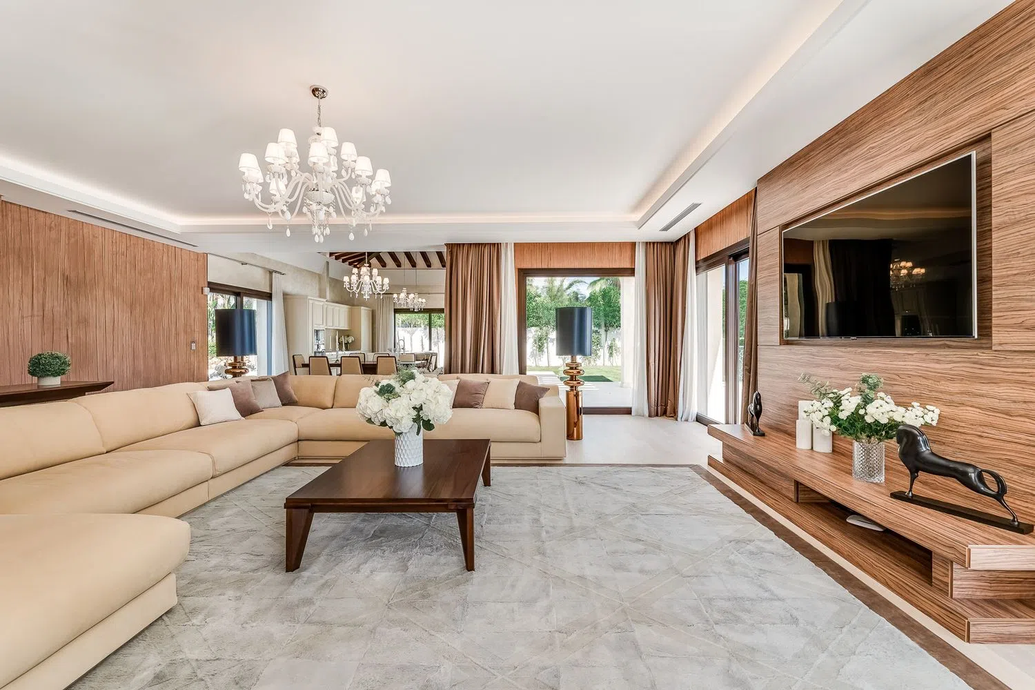 Het elegante interieur van de villa is voorzien van luxe Italiaanse meubels, met ruime woonruimtes, een volledig uitgeruste keuken en een naadloze doorgang naar de eetruimte, ideaal voor amusement. De woning omvat ook een wasruimte, opslagruimte en een ruime garage. Het infinity zwembad, het terras van 75 vierkante meter, de sauna en de Turkse stoombad bieden een luxe buitenervaring.