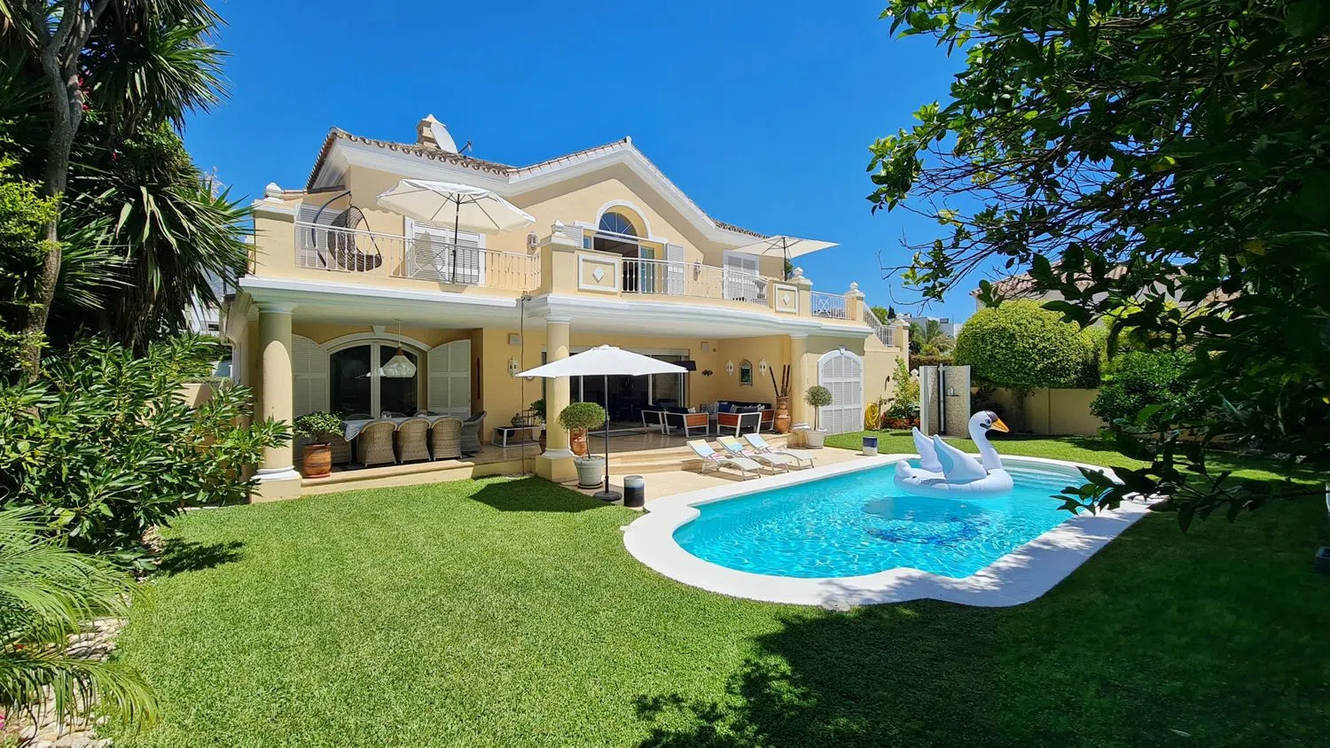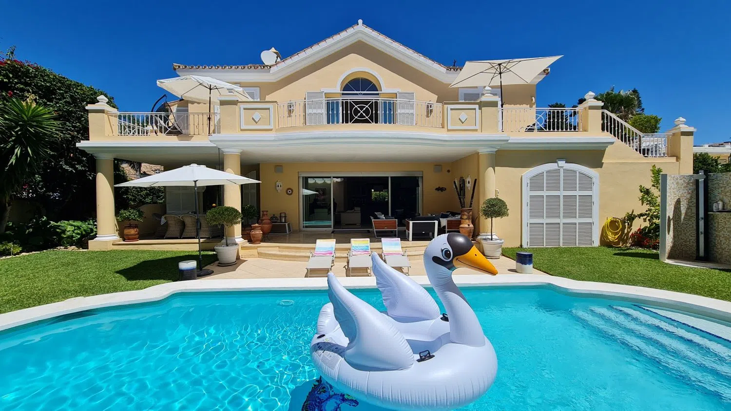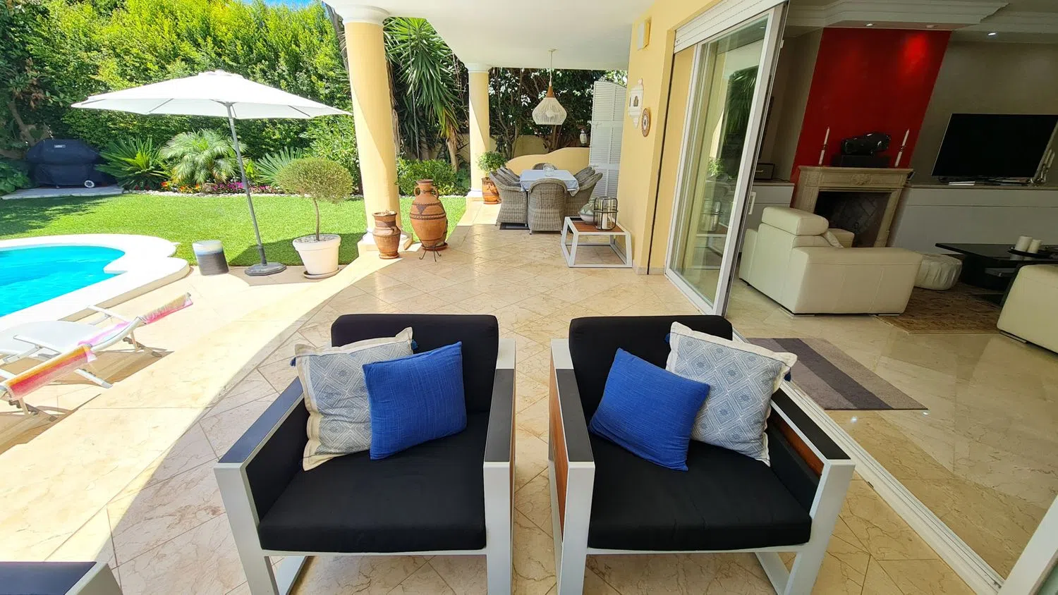 Aanvullende kenmerken van deze luxe villa zijn marmeren vloeren, dubbele beglazing, airconditioning, vloerverwarming, elektrische rolluiken en ingebouwde kasten. De woning verkeert in uitstekende staat en is recent gerenoveerd en gerenoveerd volgens de hoogste normen. Gelegen op slechts 150 m van het strand, biedt deze villa gemakkelijke toegang tot de zandstranden en kristalheldere wateren.