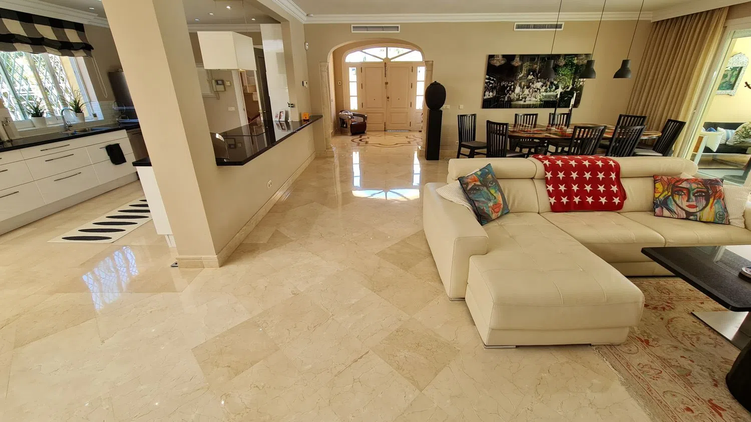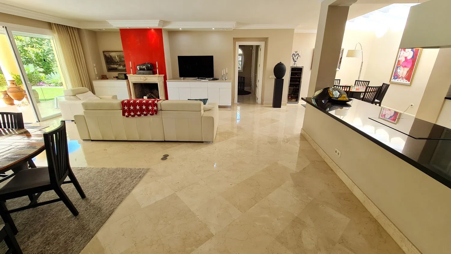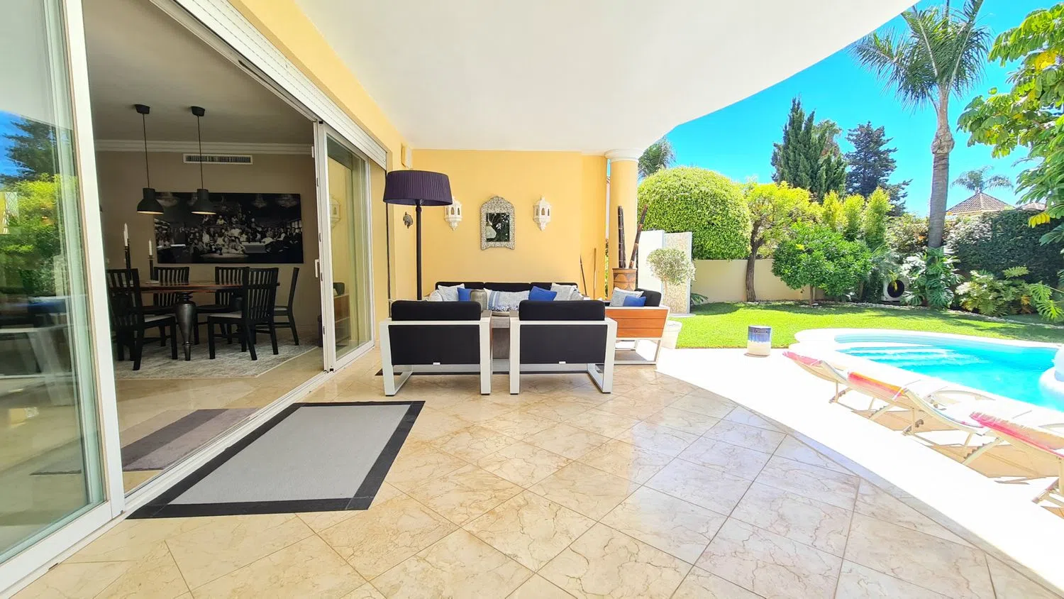 Aanvullende kenmerken van deze luxe villa zijn marmeren vloeren, dubbele beglazing, airconditioning, vloerverwarming, elektrische rolluiken en ingebouwde kasten. De woning verkeert in uitstekende staat en is recent gerenoveerd en gerenoveerd volgens de hoogste normen. Gelegen op slechts 150 m van het strand, biedt deze villa gemakkelijke toegang tot de zandstranden en kristalheldere wateren.