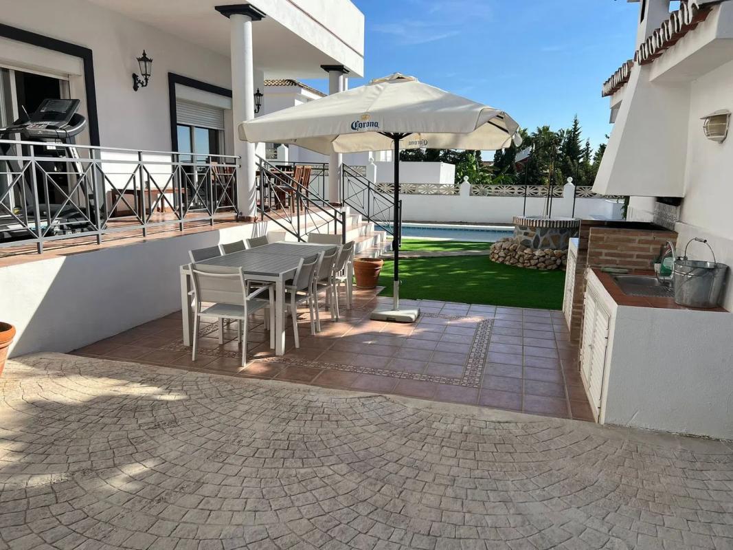 Deze villa biedt vijf slaapkamers, gelegen op een perceel van 1000 m² en een bewoonbare oppervlakte van 470 m² met terrassen. Het bevindt zich dichtbij het busstation van Marbella, in een van de meest gewilde wijken van Xarblanca, op slechts enkele minuten rijden van het stadscentrum en het strand. Gelegen in een rustige, zuidwestelijk georiënteerde buurt van Marbella, is deze woning deel van een privécomplex, op korte afstand van voorzieningen zoals restaurants, supermarkten, scholen en parken. Het pand biedt een bevoorrechte omgeving, omringd door de natuur en met uitzicht op de bergen en de hele stad.