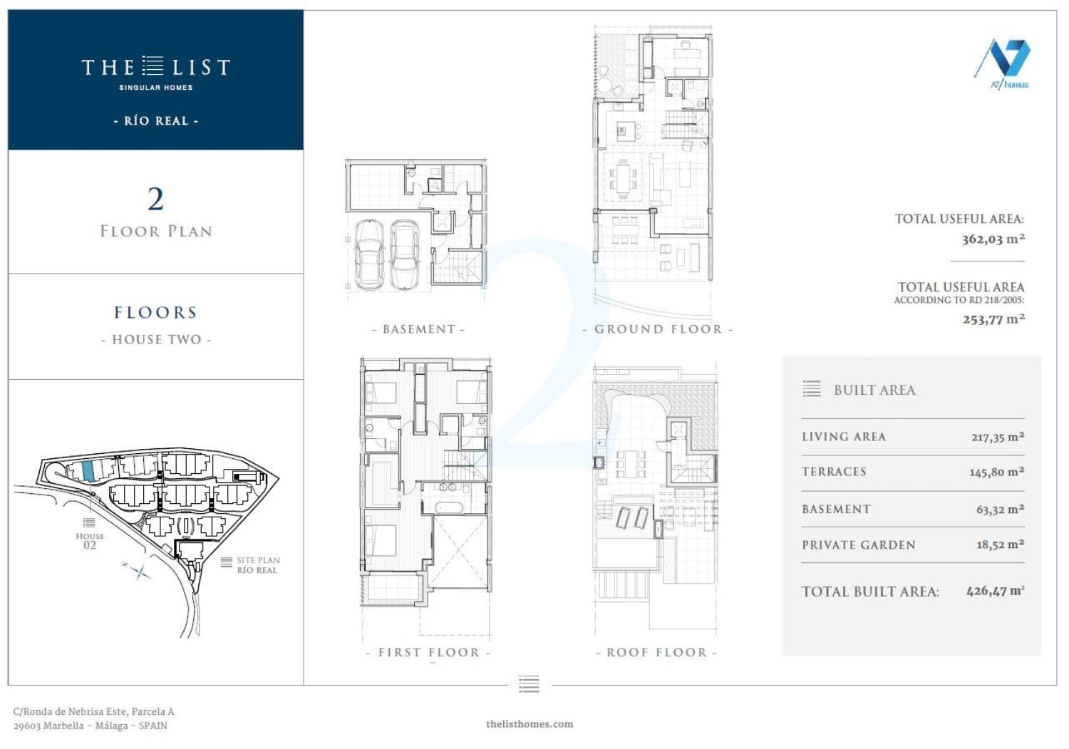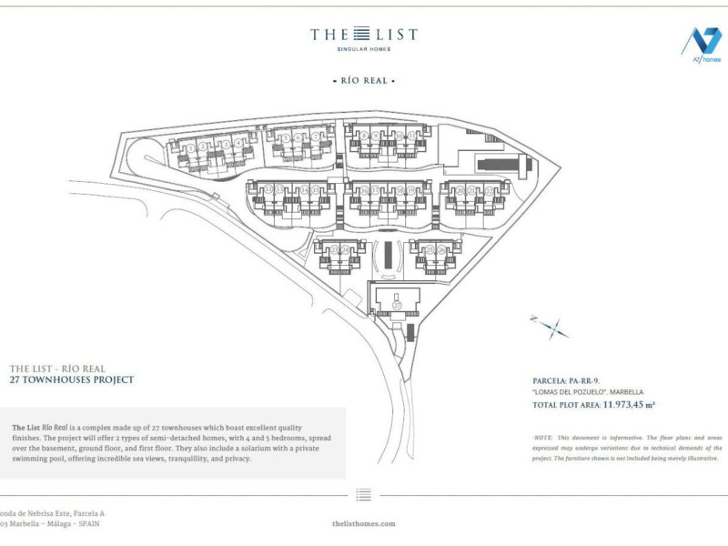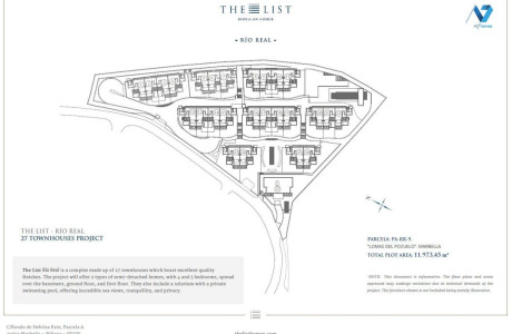 The List Río Real es un complejo de 27 viviendas adosadas y pareadas con un nivel de acabados excelente.Gracias a la pendiente de la parcela, la implantación de las viviendas se escalona en diferentes líneas para absorber las diferencias de rasante garantizando unas impresionantes y claras vistas al mar de cada una de las viviendas proyectadas.El proyecto contará con 2 tipos de viviendas, adosadas y pareadas de 4 y 5 dormitorios, distribuidas en planta sótano, baja, primera y solárium en la cual se dispondrá de una piscina privada con impresionantes vistas al mar.El área destinada a garaje se situará en subterráneo con un único acceso para los vehículos desde el viario público y evitando el tráfico rodado dentro de la urbanización.La urbanización dispone de piscina descubierta de uso comunitario y amplios jardines y caminos de acceso a cada vivienda.El conjunto contará con un gimnasio al que se accede desde la planta superior de terraza de la zona comunitaria. El gimnasio dispone de un baño turco, sauna, sala de masaje, además de los baños, uno de ellos adaptado para personas con movilidad reducida.Tu seguridad y la de los tuyos es lo más importante, por eso The List cuenta con el mejor servicio de la Costa del Sol, personal 24 horas 7 días a la semana, alarmas y cámaras perimetrales que te permitirán disfrutar de tu casa sin preocuparte de nada más.