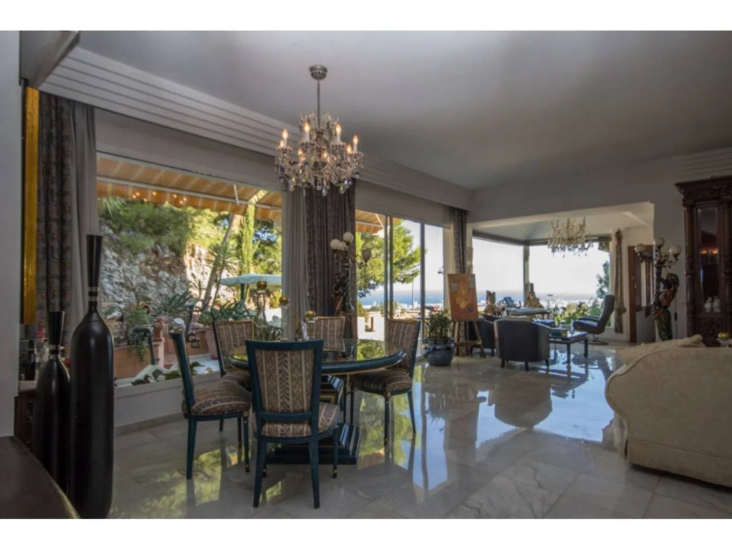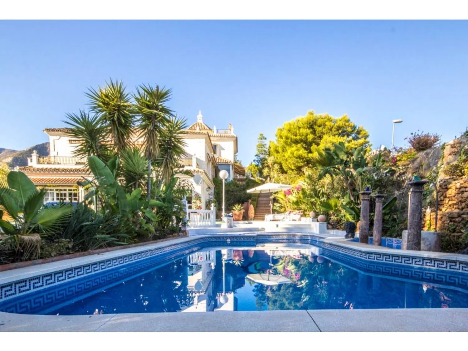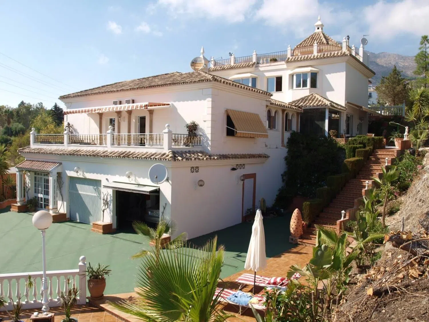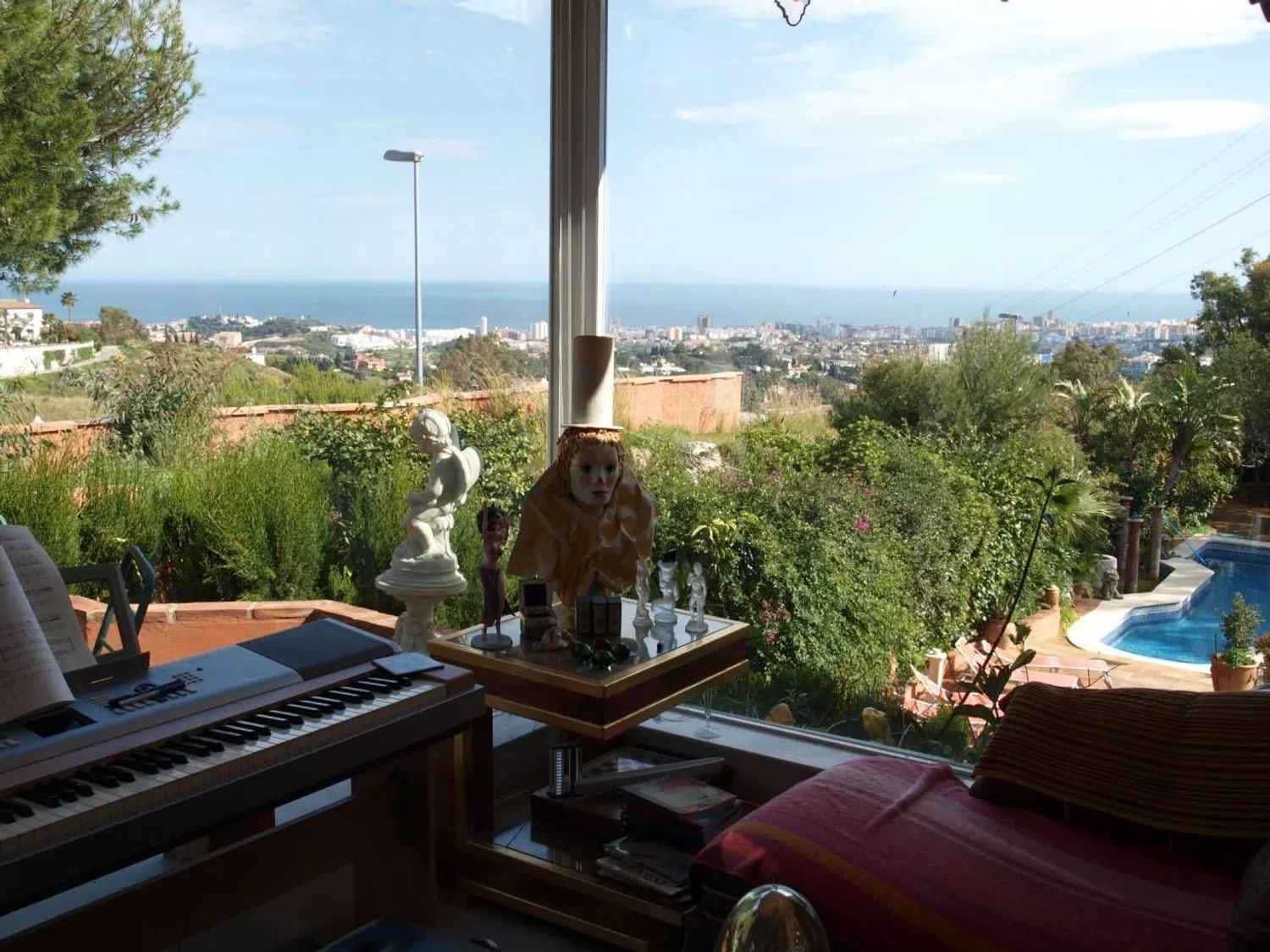 Mooie vrijstaande villa met panoramisch uitzicht op zee en de bergen, privézwembad, waterval en prachtige terrasruimtes rond de villa. De woning heeft 4 slaapkamers en 4 badkamers. Ruime en lichte woonkamers, een gastenappartement met 1 slaapkamer, 1 badkamer, keuken en salon, kantoor, garage en privé-parkeerplaats voor meerdere voertuigen. Gelegen op slechts een paar minuten rijden van het dorp Mijas. De villa wordt gedeeltelijk gemeubileerd verkocht. Geen gemeenschapskosten.