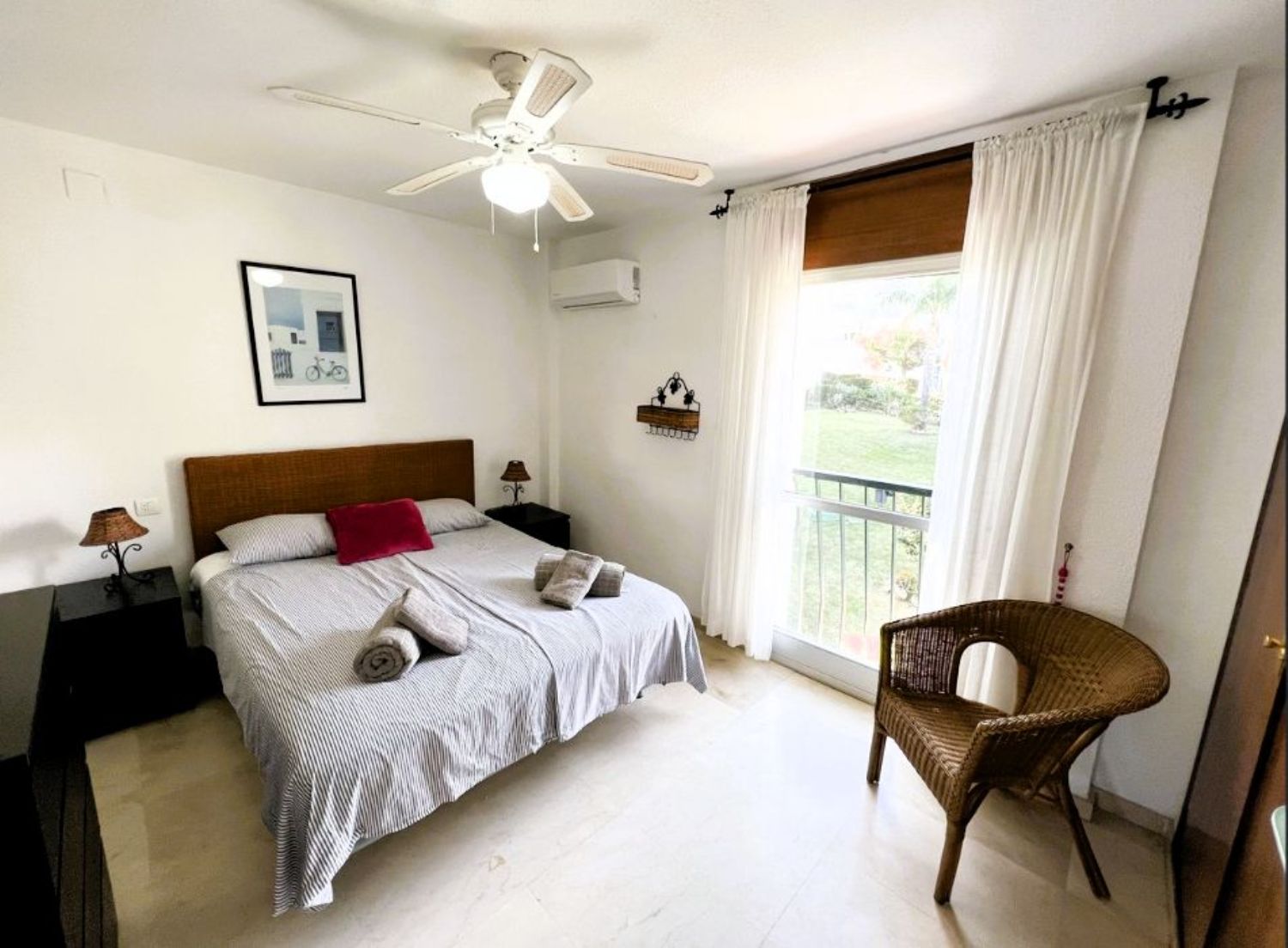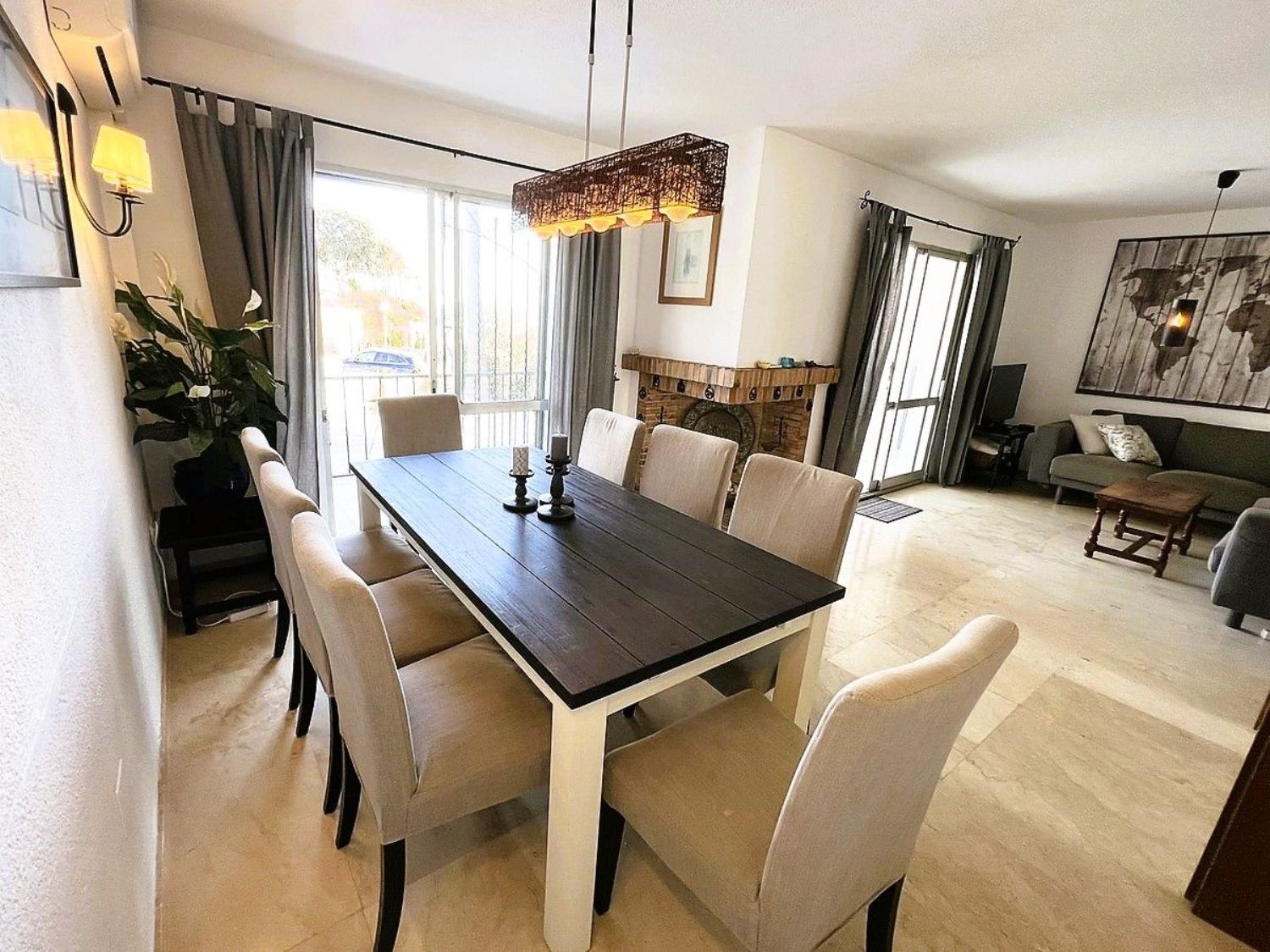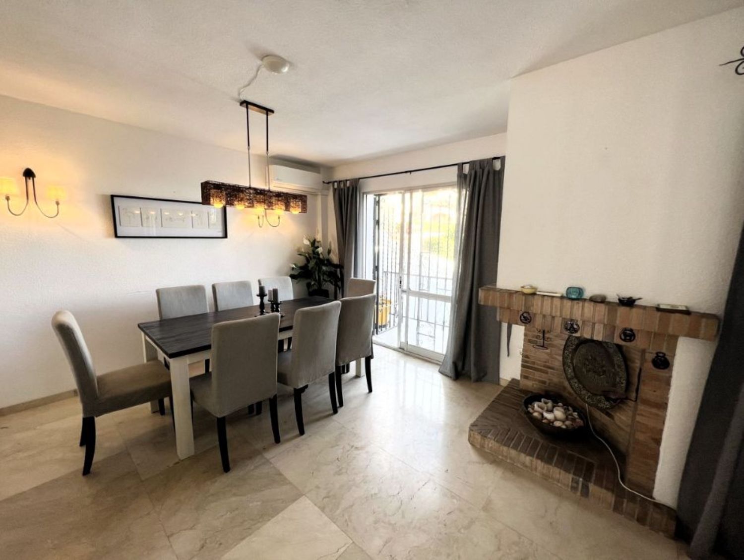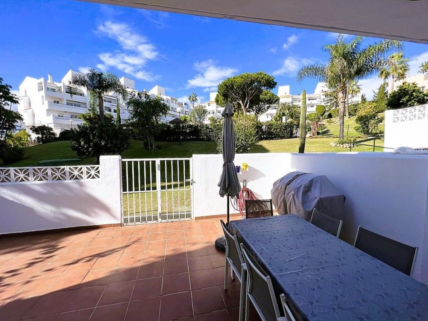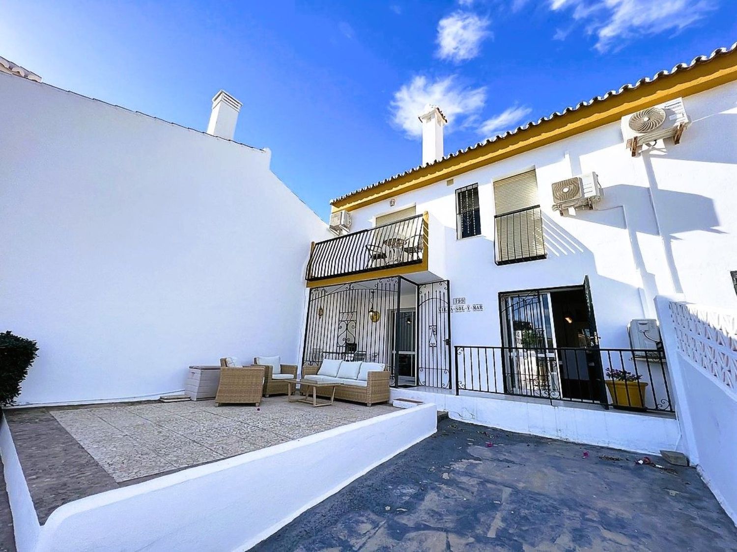 Le damos la bienvenida a esta encantadora casa adosada de cuatro habitaciones, dos baños y un aseo, situada en Mijas Costa, a poca distancia de la playa.La casa se encuentra en el complejo Wyndham (anteriormente Club La Costa) y se encuentra a una corta distancia de Fuengirola, el centro comercial Miramar, Castillon, restaurantes, tiendas y la playa. Además, en las afueras de la zona, se puede acceder a hermosos senderos para caminar y a excelentes rutas para andar en bicicleta, así como a canchas de pádel y tenis.La casa está situada en una de las calles más pequeñas de la zona y, si tiene un automóvil, puede estacionarlo en el amplio estacionamiento para invitados o en el estacionamiento privado dentro de la puerta, justo al lado de la propiedad. Frente a esta entrada, también encontrará una amplia terraza con sol de la mañana, donde podrá disfrutar de su desayuno si lo desea.Al entrar, encontrará la sala de estar y el comedor, ambos con puertas de vidrio que dan a la terraza. Una puerta doble conduce a un pequeño vestíbulo desde donde se puede acceder a la cocina, al aseo de invitados, a las escaleras que conducen a la planta superior y al patio trasero orientado al oeste. El patio cuenta con suficiente espacio para una mesa y tumbonas y, a través de la puerta, se accede al jardín verde lleno de árboles y plantas. Aquí también encontrará la zona de la piscina común.En la planta superior, encontrará cuatro amplias habitaciones y dos baños, siendo el principal de ellos en suite. El dormitorio principal también cuenta con un balcón privado con vistas a la zona.