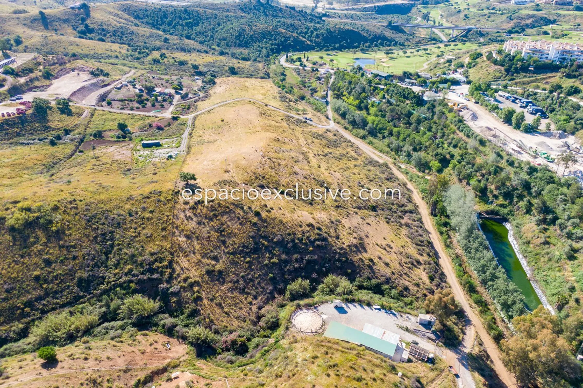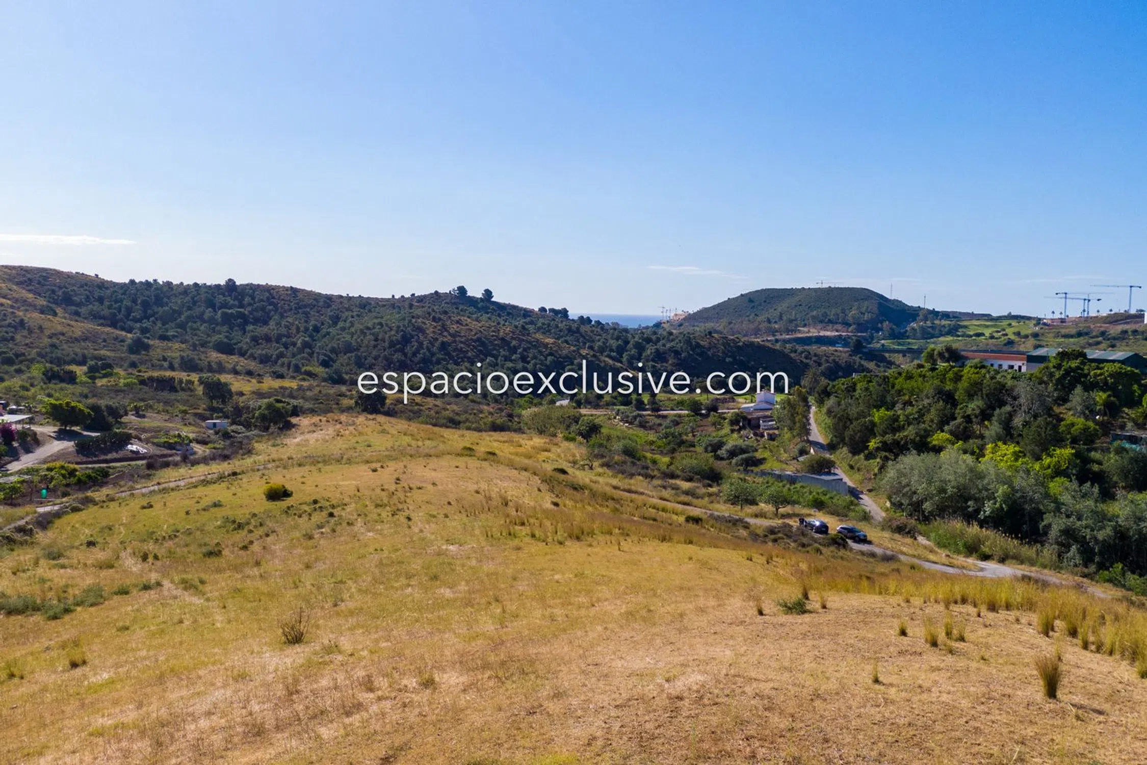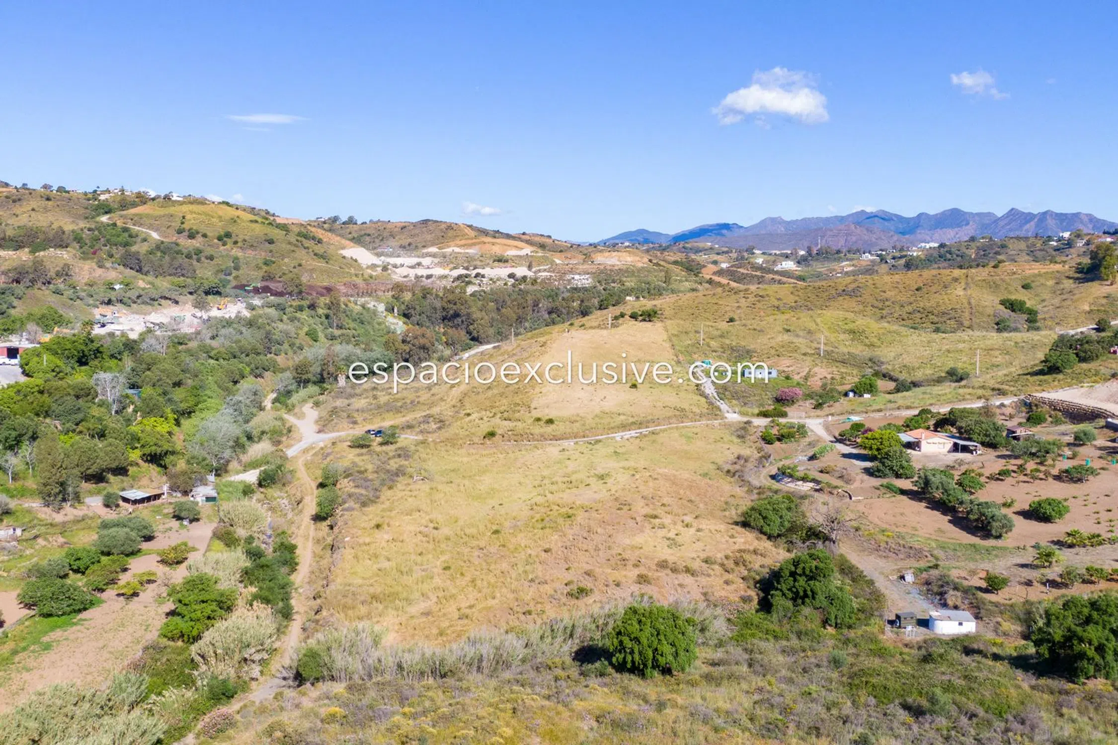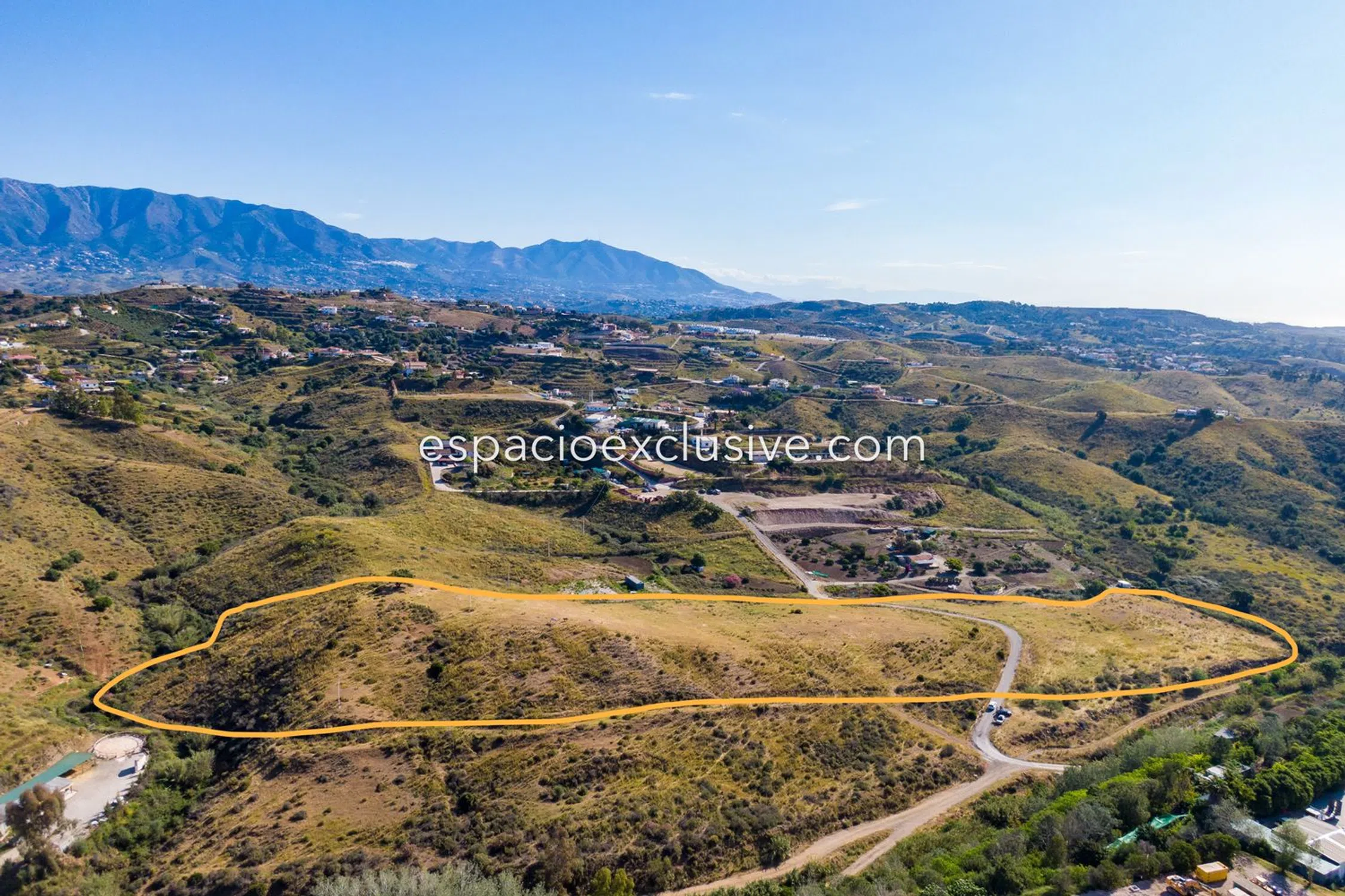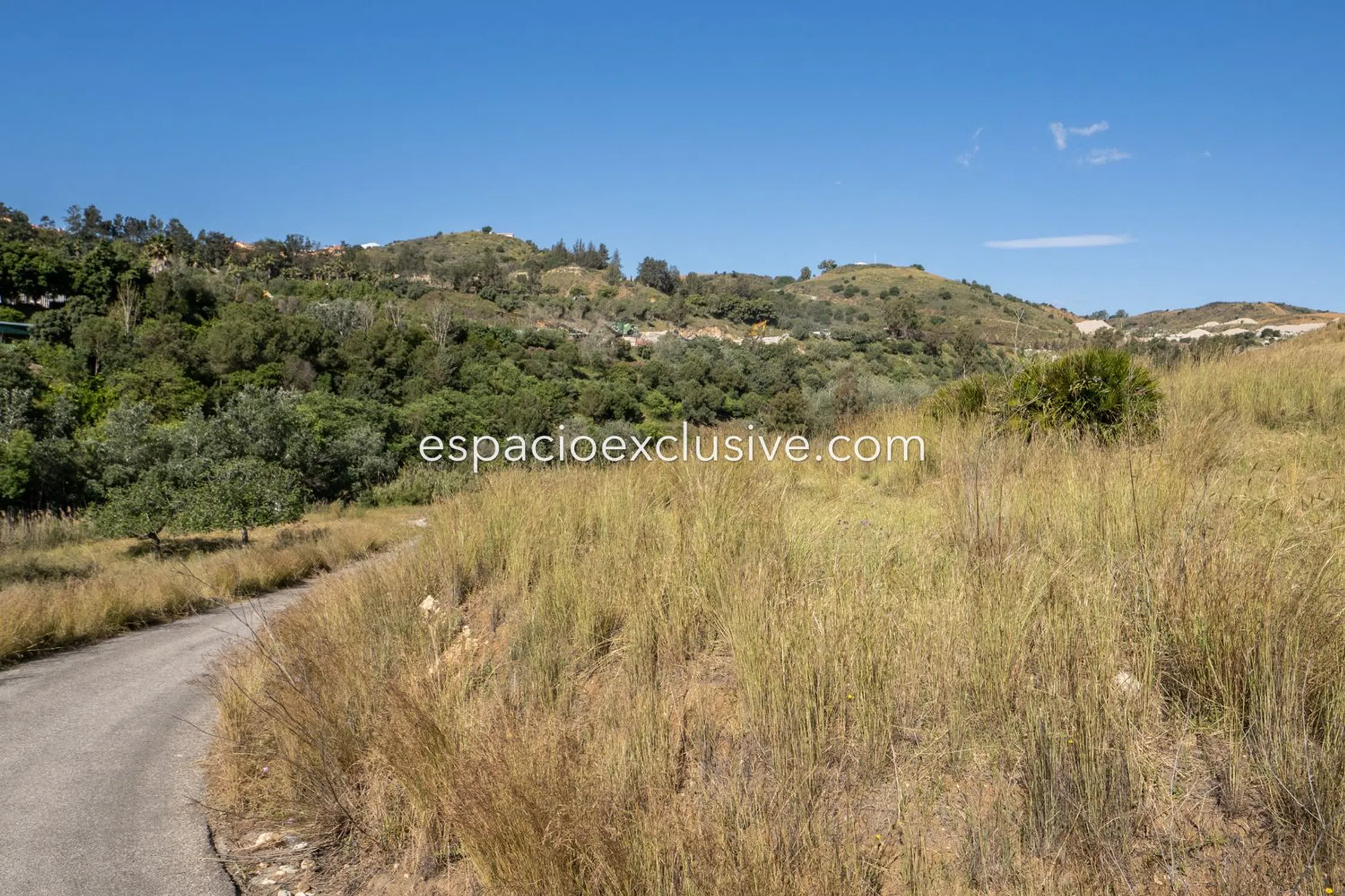 Het perceel van 29.700 m² is verdeeld door de toegangsweg met 10.000 m² aan de zuidkant en 19.700 m² aan de noordkant, met een heuvel die zicht biedt over de hele vallei. Slechts 5 minuten rijden van het centrum van La Cala en de stranden van de regio, en met een goede verbinding met de snelweg.