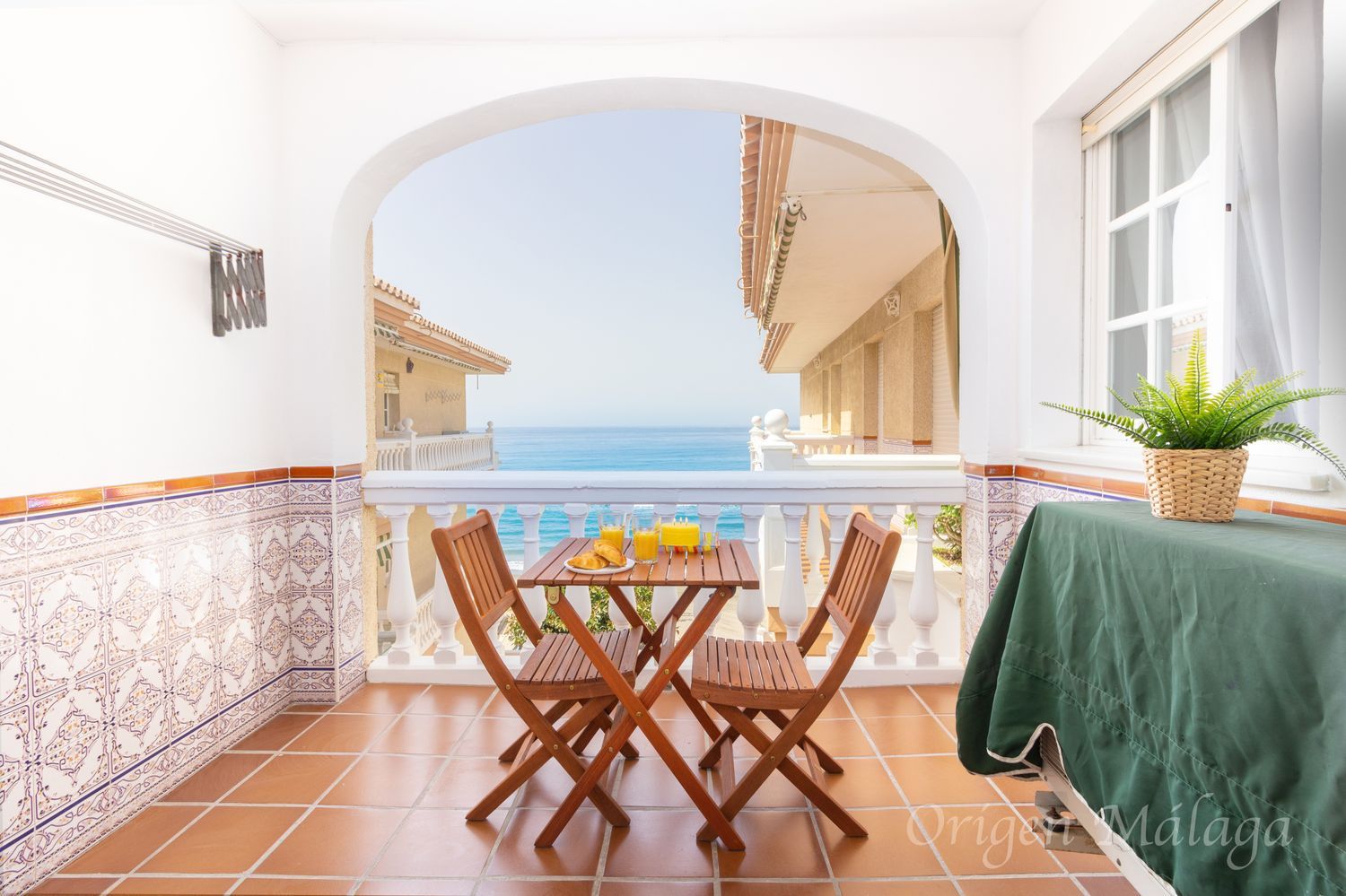Quieres vivir los mejores veranos de tu vida? Quieres hacer de tu día a día unas vacaciones permanentes? Quieres ver el mar cada mañana y dormirte con el murmullo de las olas?Entonces, bienvenido a tu hogar! Cuando entras lo primero que ves y te cautiva son las vistas al mar. Hoy en día es un privilegio vivir en Málaga y tener estas maravillosas vistas desde la primera linea de playa. Porque no hay nada entre tú y la arena de la playa, bueno, la piscina y los jardines, claro. Te importa? No, claro, eso pensábamos nosotros. Porque además de estar junto al mar tienes una fantástica zona común con jardines y piscina y de ella sales directamente a la arena de la playa.Es ideal para disfrutar del buen clima de esta zona que mantiene una buena temperatura a lo largo de todo el año. Está considerado uno de los mejores climas de Europa.Es un piso con zonas amplias y cómodas. En la entrada un gran ropero ideal para zapatos y para dejar bolsos o chaquetones. Muy práctico para el orden la casa.El salón es amplio y tiene zona de comedor que está conectado con la cocina por un cómodo pasaplatos.La cocina tiene mucha zona de almacenaje y también tiene placa de inducción, lavavajillas y el frigorífico nuevo.Tanto la cocina, como el baño y un dormitorio dan a un gran patio de luces y al ser la última planta aporta mucha luz a las estancias y son muy tranquilas y silenciosas.El salón se abre a la terraza, amplia y con maravillosas vistas al mar donde poder disfrutar del sol en invierno que te calienta e ilumina y en verano es fresquita y agradable durante todo el día.La ventana del dormitorio principal da a la terraza con lo que tienes vistas laterales al mar y el sonido de las olas para mayor disfrute y relax. Es como estar en el paraíso.Además tienes la comodidad del parking en el mismo edificio desde el que también se puede ir a la piscina y playa sin necesidad de que tengas que pasar por la calle para acceder a ellas.A poco metros cuentas con supermercado, tiendas, farmacia, restaurantes y colegio, ya que el morche es un espacio pequeño y cómodo dentro de lo que es torrox-costa.Si estabas buscando un sitio idílico donde perderte y olvidarte del mundo, has encontrado tu pequeño paraíso. No lo dejes escapar.