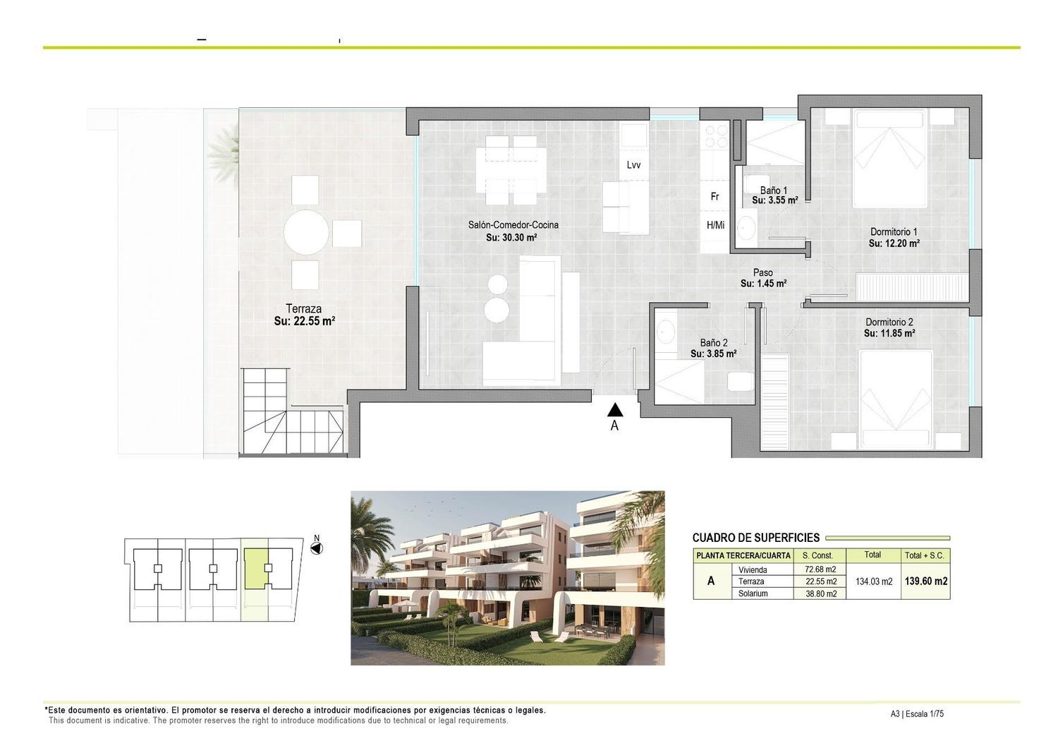APARTAMENTOS DE OBRA NUEVA EN EL CAMPO DE GOLF DE CONDADO DE ALHAMA Complejo residencial de villas y apartamentos de nueva construcción en Condado de Alhama. Los 8 hermosos apartamentos se distribuyen entre planta baja, primera, segunda y tercera, con dos viviendas en cada planta y ascensor para pasar de un nivel a otro. Disponen de varias piscinas comunitarias, plaza de aparcamiento exterior para cada apartamento, trastero y terraza con cocina de verano. Las viviendas de la última planta tienen un solarium. Las dos viviendas de la planta baja tienen 3 dormitorios y 2 baños completos y el resto de las viviendas tienen 2 dormitorios y 2 baños completos también. Las viviendas han sido diseñadas con un estilo contemporáneo y un concepto abierto, compuesto por una cocina equipada y un salón-comedor. La promoción se encuentra en el Condado de Alhama, Murcia, dentro de un complejo turístico de lujo, con zonas deportivas y rodeado de naturaleza, todos los servicios, y varios Campos de Golf. La vivienda cumplirá con los más altos estándares y estará dotada de: Piscinas comunitarias con amplias zonas verdes. Cocina completamente amueblada y equipada con horno y microondas elevados y en columna, nevera y lavavajillas integrados, placa de inducción y campana extractora. Iluminación: en el interior de la vivienda (comedor, cocina, pasillos y baños), así como en las zonas exteriores. Armarios forrados con cajones y estantes. Cuartos de baño totalmente equipados con mueble de lavabo, inodoro suspendido, espejo, ducha mural y mamparas de ducha. Preinstalación de aire acondicionado por conductos. Cocina de verano en las terrazas. Solarium en las plantas superiores. Plaza de aparcamiento exterior con trastero. Ascensor (desde la planta baja hasta la 3ª planta). Condado de Alhama Golf Resort es un fantástico complejo de golf con muchas instalaciones y servicios. Un centro comercial, un centro deportivo, una variedad de bares y restaurantes, supermercados y más de 25 piscinas y jardines comunitarios. Condado de Alhama Golf Resort tiene su propio campo de golf diseñado por Jack Nicklaus y está a sólo 15 minutos de las hermosas playas de Bolnuevo y Mazarrón. Mazarrón tiene más de 35 km de costa, gran parte de la cual es costa virgen. Numerosas playas de la Bahía de Mazarrón han sido galardonadas con la Bandera Azul por su calidad. Condado de Alhama Golf Resort está a sólo 20 minutos del nuevo aeropuerto internacional de Corvera.