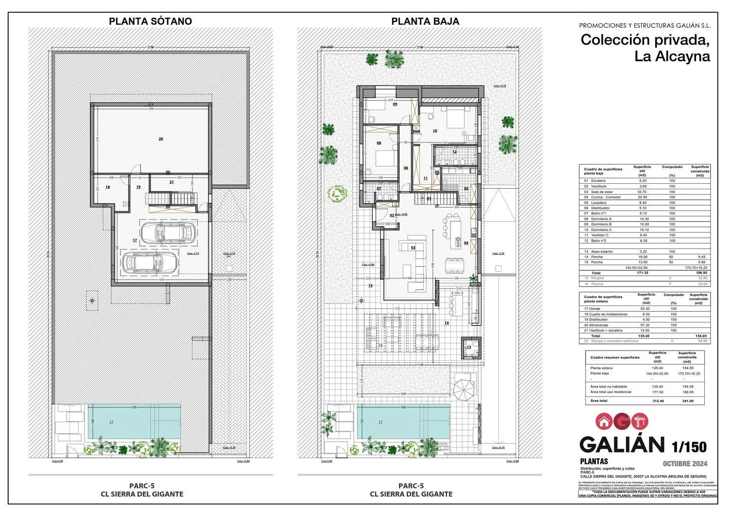 Esta exclusiva vivienda es de obra nueva, pertenecer a la Colección Privada, La Alcayna promovida por Promociones y Estructuras Galián S. L. Cuenta con una superficie construida de 341.00 m², distribuida en dos plantas (planta baja “siendo esta totalmente accesible” y planta sótano), diseñada para ofrecer una experiencia de lujo contemporáneo y confort en un entorno excepcional. Cada detalle de esta vivienda ha sido cuidadosamente diseñado para ofrecer un estilo de vida exclusivo en La Alcayna, una de las zonas más prestigiosas de Murcia. Su entorno natural y tranquilo, a pocos metros del Coto Cuadros, permite disfrutar de la naturaleza mientras se disfruta de un hogar moderno, elegante y lleno de luz. El precio incluye: parcela + proyecto + licencia de obras + construcción con memoria de calidades ejecutivo. (Impuestos no incluidos). Solicítanos la memoria de calidades, planos y más información en Arquitectos García.